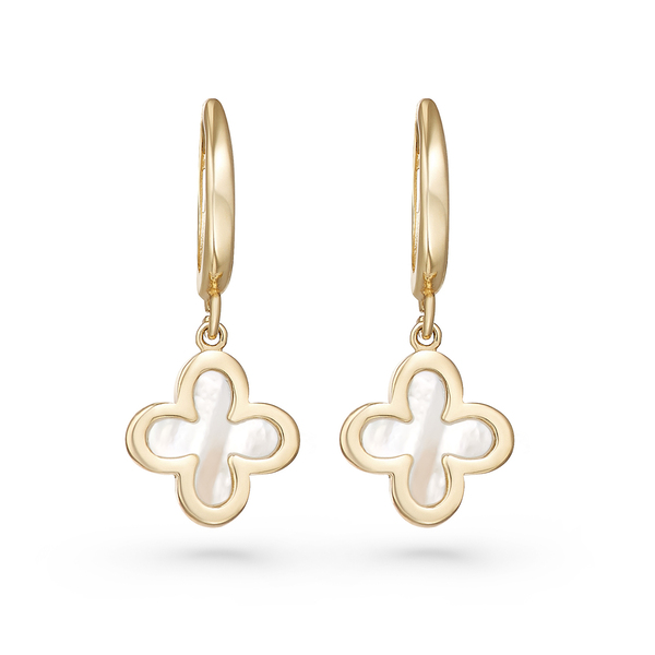 Revealing an elegance perfect for all those special occasions, these 9ct Yellow Gold Mother of Pearl Clover Hoop Earrings will make a stunning enhancement to your jewellery collection.