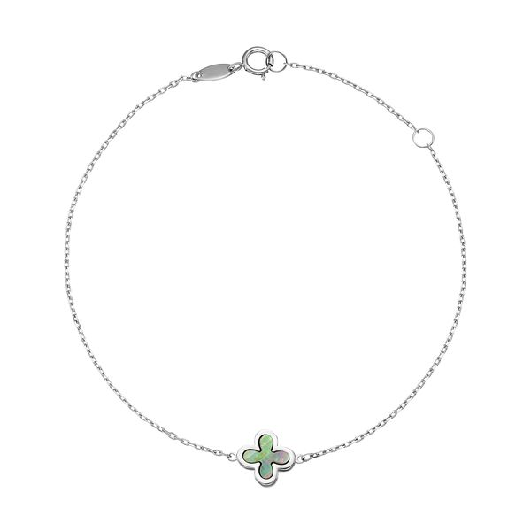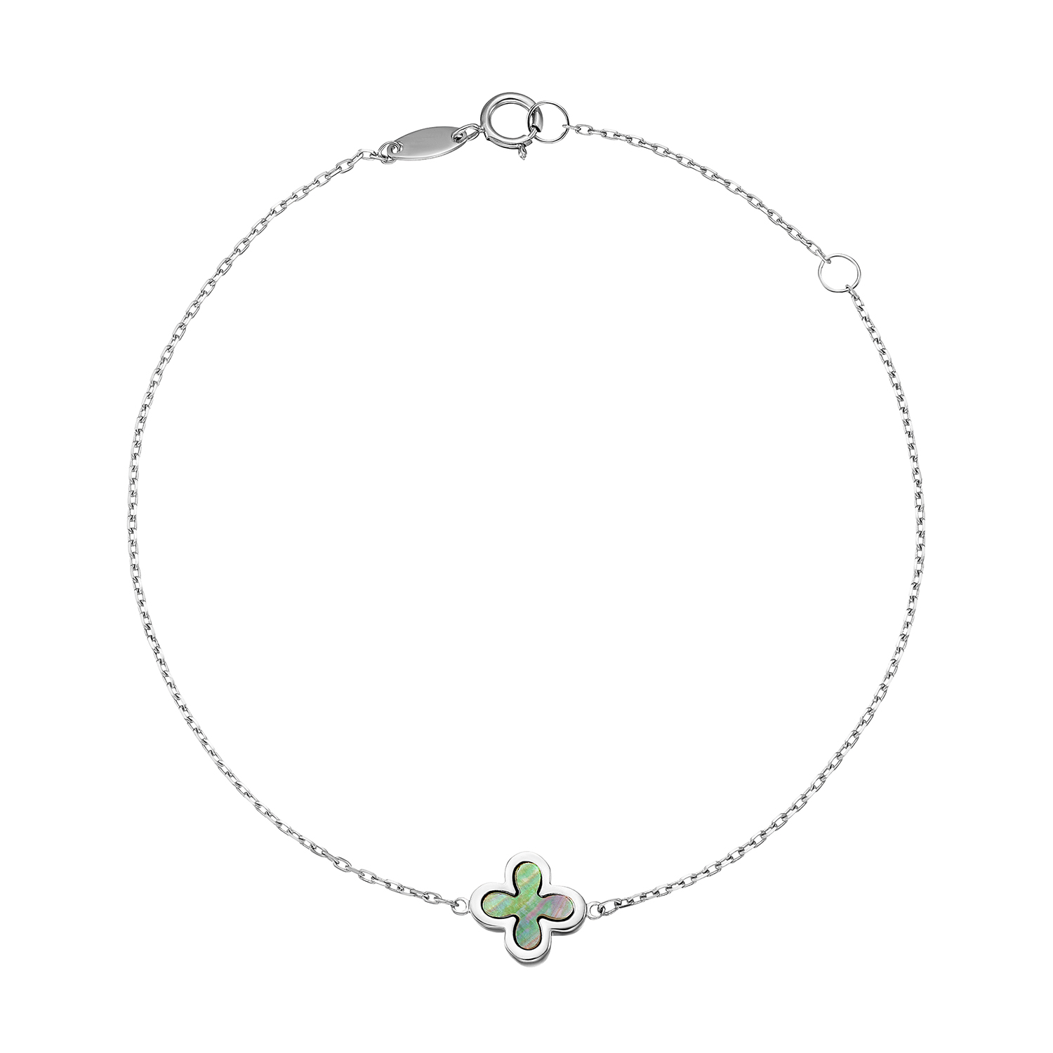 Captivating both your eyes and heart, this 9ct White Gold Mother of Pearl Clover Bracelet ensures you always stand out with contemporary, enchanting style. Perfect for those special occasions.