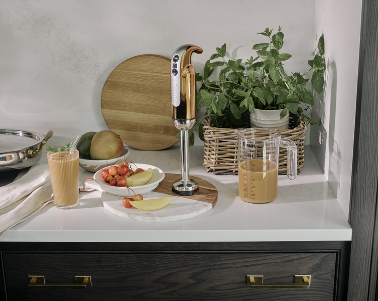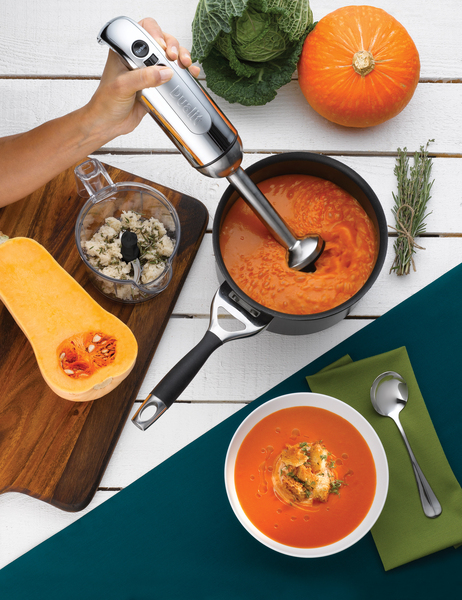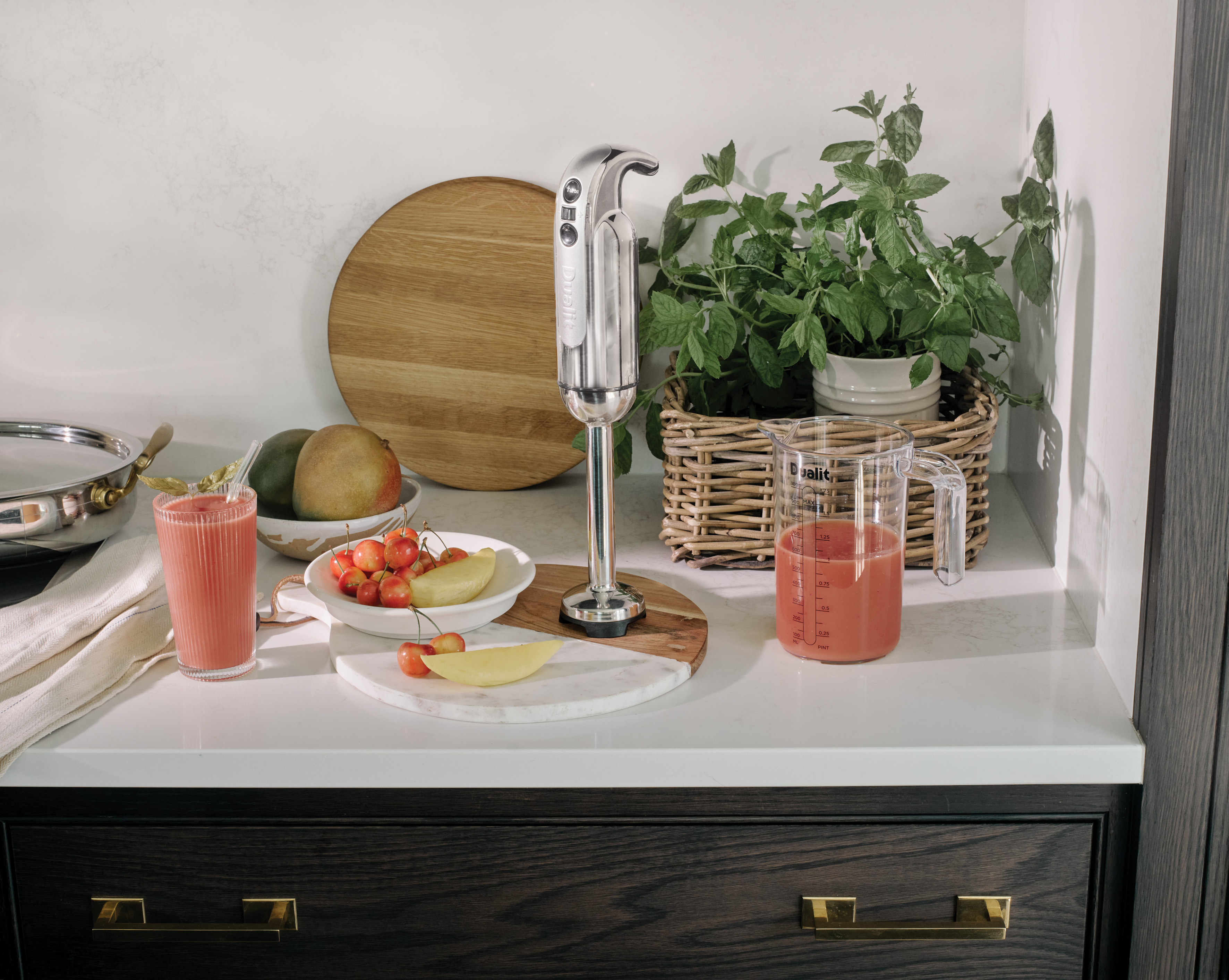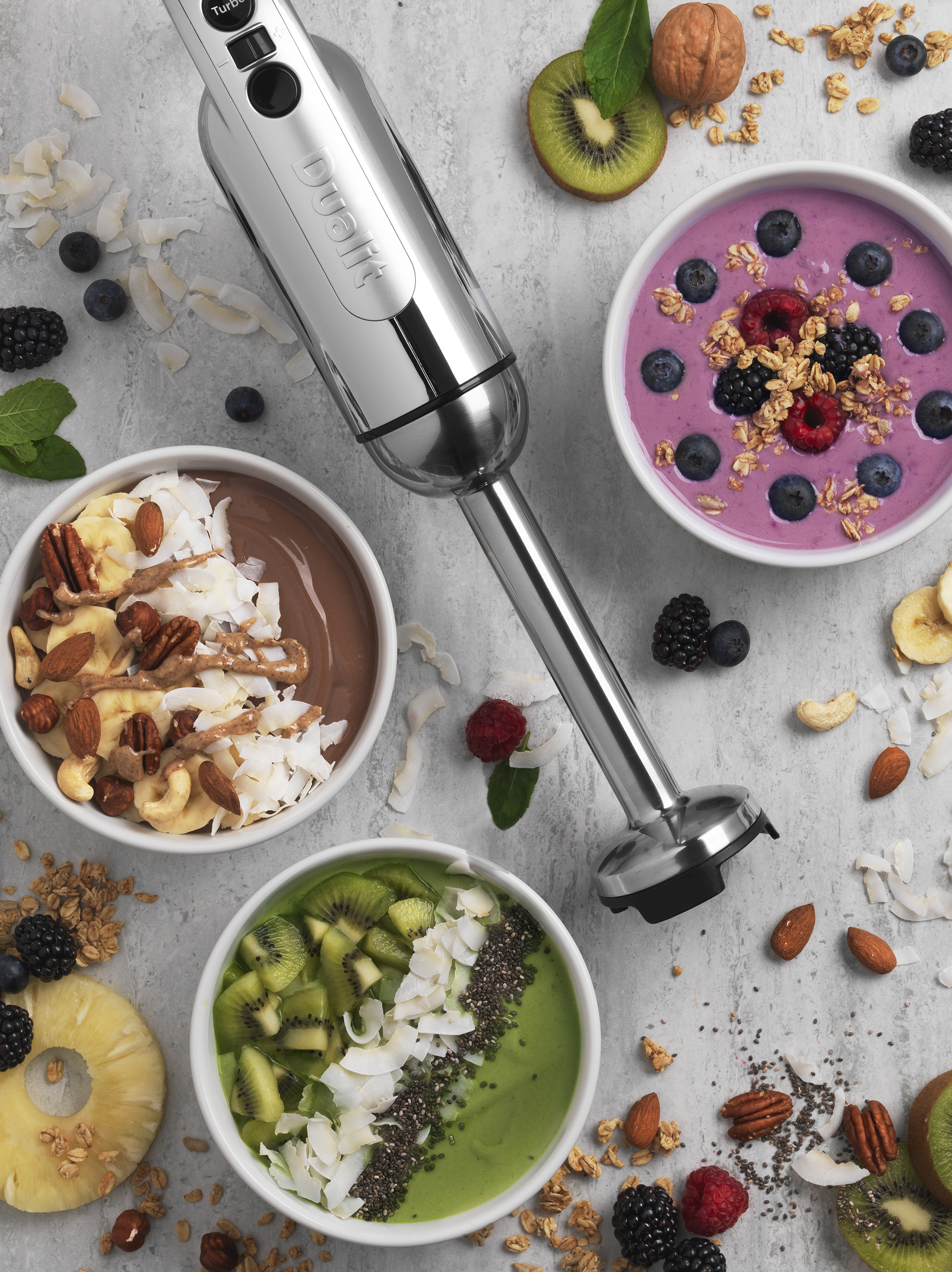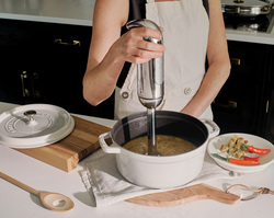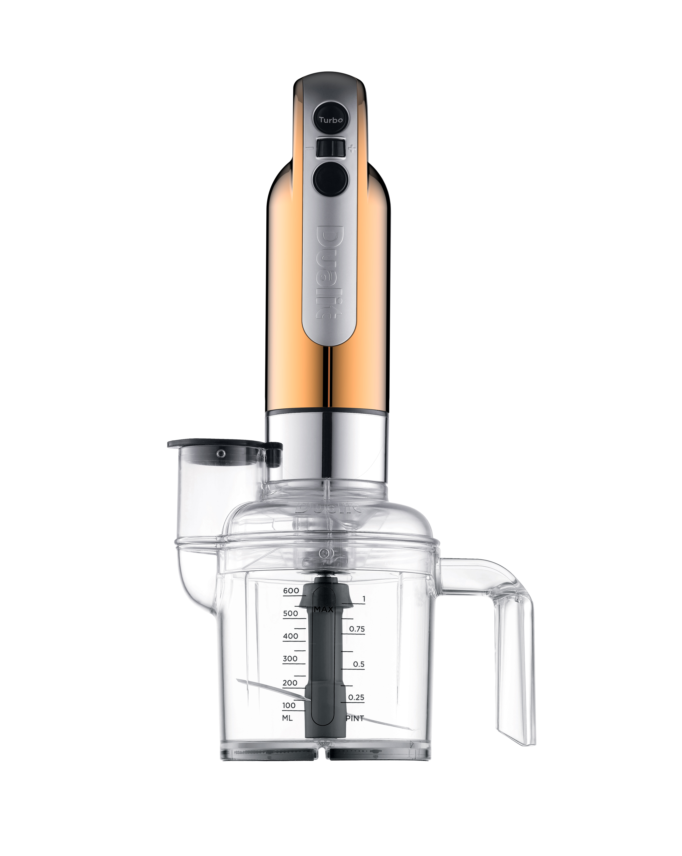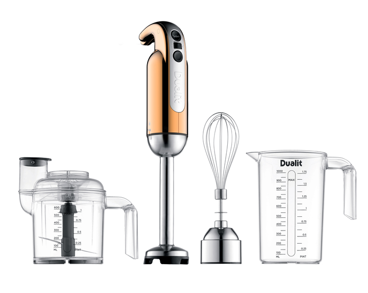 Dualit's 700W Hand Blender is a flexible kitchen assistant that takes on chopping, pureeing and whisking with seamless speed. From salsa to perfectly pureed baby food - you can even mix up mouth-watering meringues in a matter of moments. With an ergonomic grip that sits perfectly in your hand, you have complete control thanks to the anti-suction blending wand that won't grip the bottom of your pan. With an extensive speed range (7,000-16,000rpm) and a super-charged turbo option (17,000-18000rpm), Dualit's Hand Blender is up to the toughest kitchen challenges.