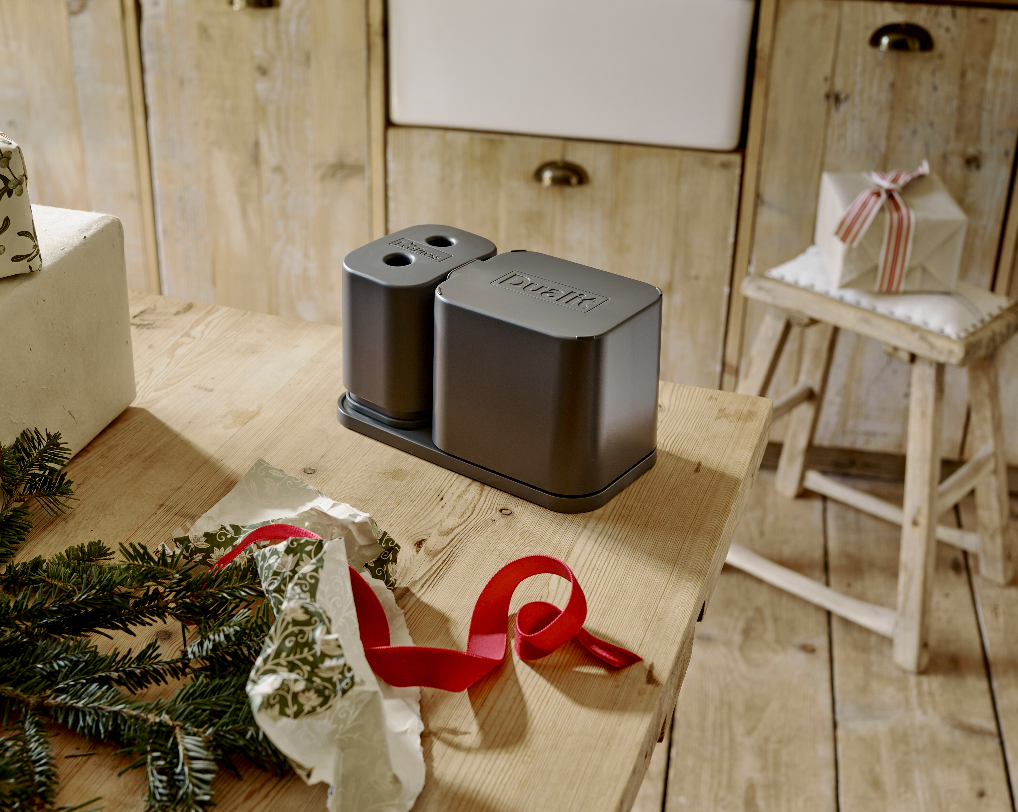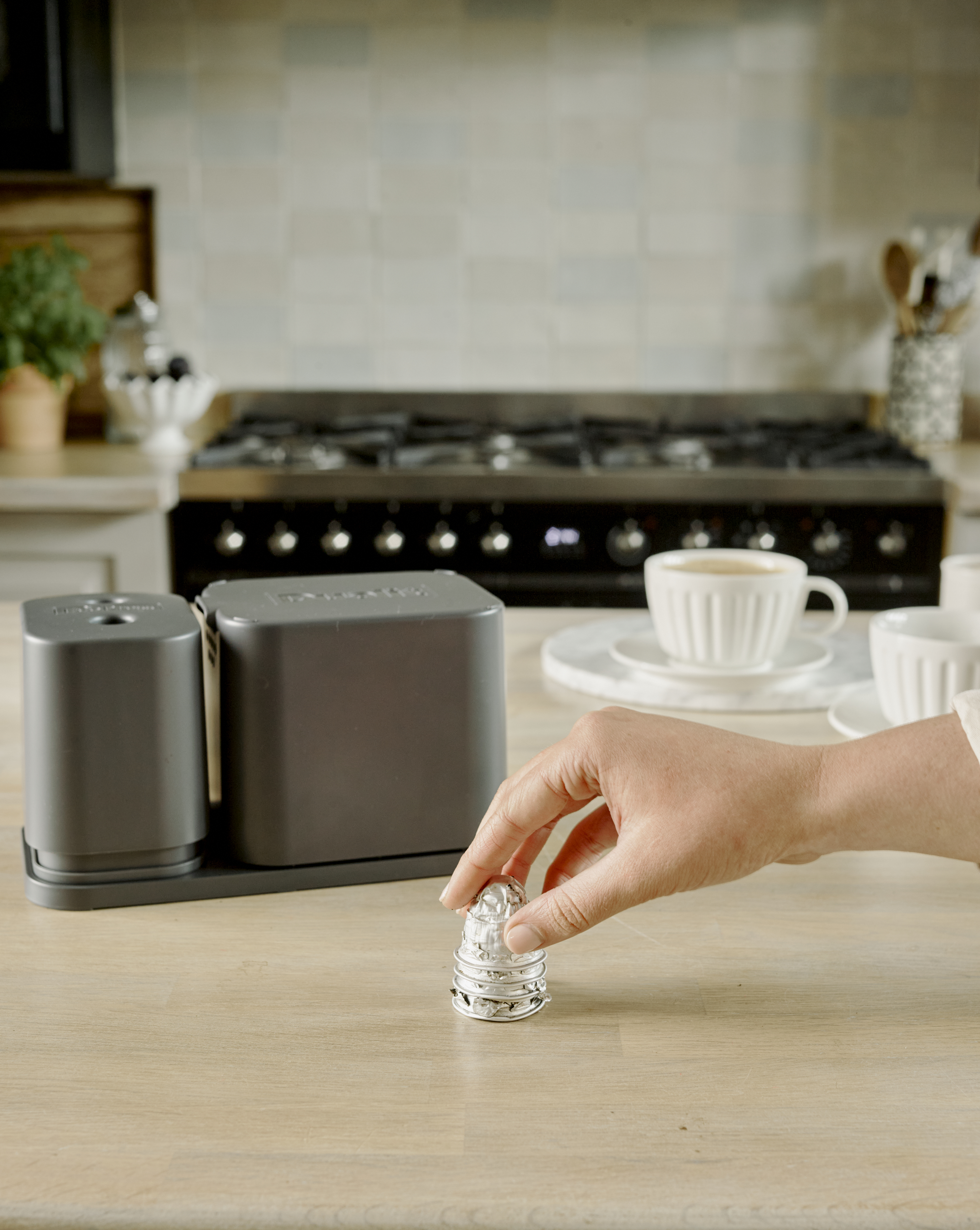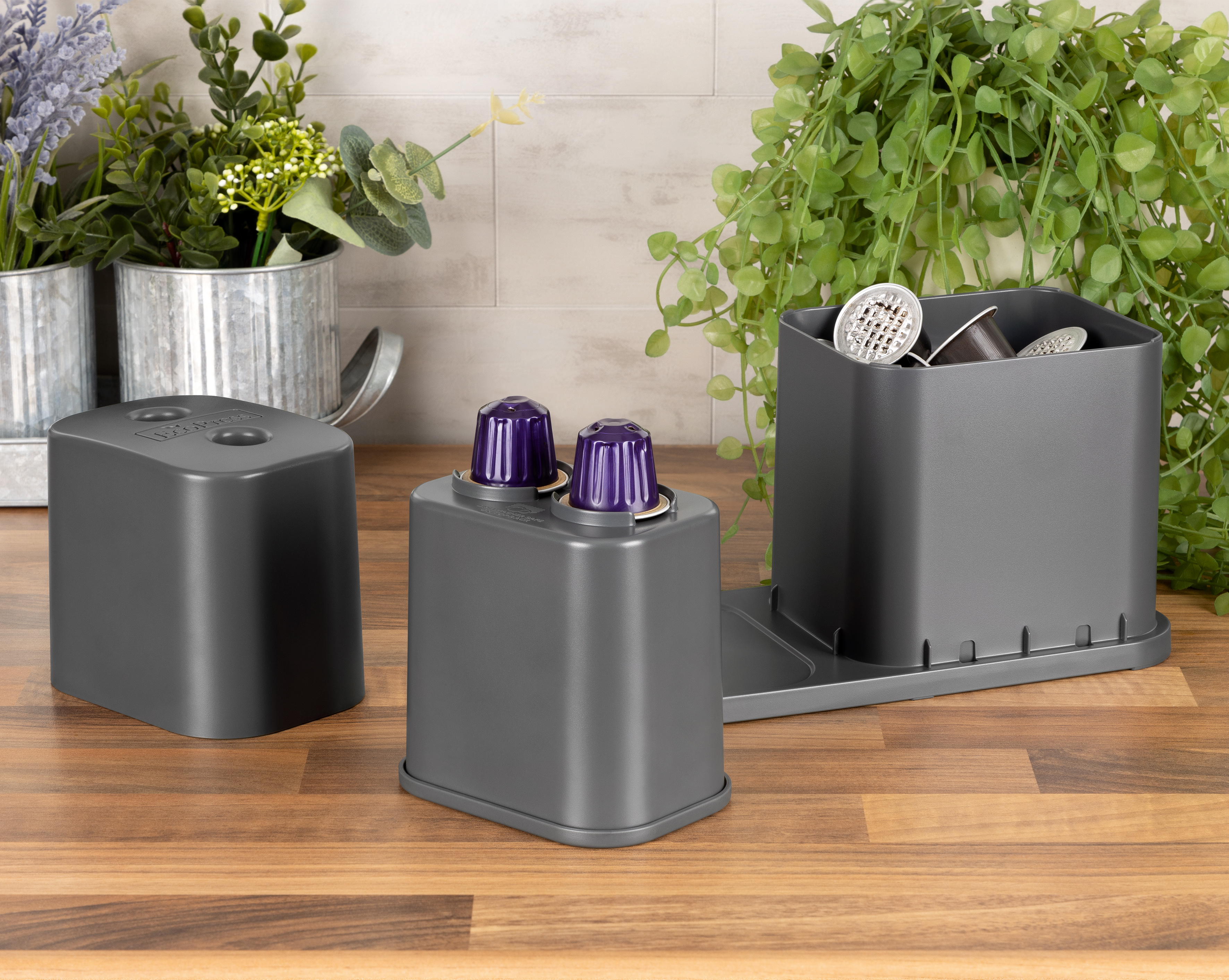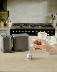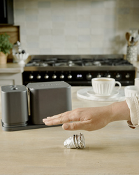 Dualit's EcoPress Duo Max helps make recycling used aluminium coffee pods at home fast and simple. Compatible with most brands of original aluminium capsules*, the EcoPress Duo Max turns pods inside out, two at a time for extra speed, to remove coffee grounds. After a quick rinse, all that's left to do is stack your clean capsules and squash together, then add to your household recycling bin. The coffee grounds can then be composted. EcoPress Duo Max includes a space to store used capsules, and a rinsing container to remove any leftover grounds.