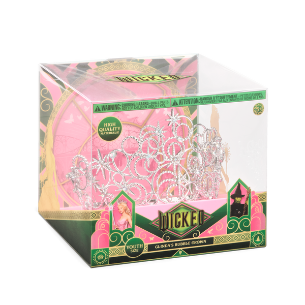 Shine like Glinda the Good Witch with this film-accurate youth-size replica of Glinda’s Bubble Crown, as seen in Wicked. The intricate details of Glinda’s Bubble Crown are recreated in shining metal with iridescent gems. This recreation of Glinda’s Bubble Crown is in youth size, measuring approx. 3” tall. Glinda’s Bubble Crown comes in Wicked-branded packaging. Recommended for Wicked fans age 5+
