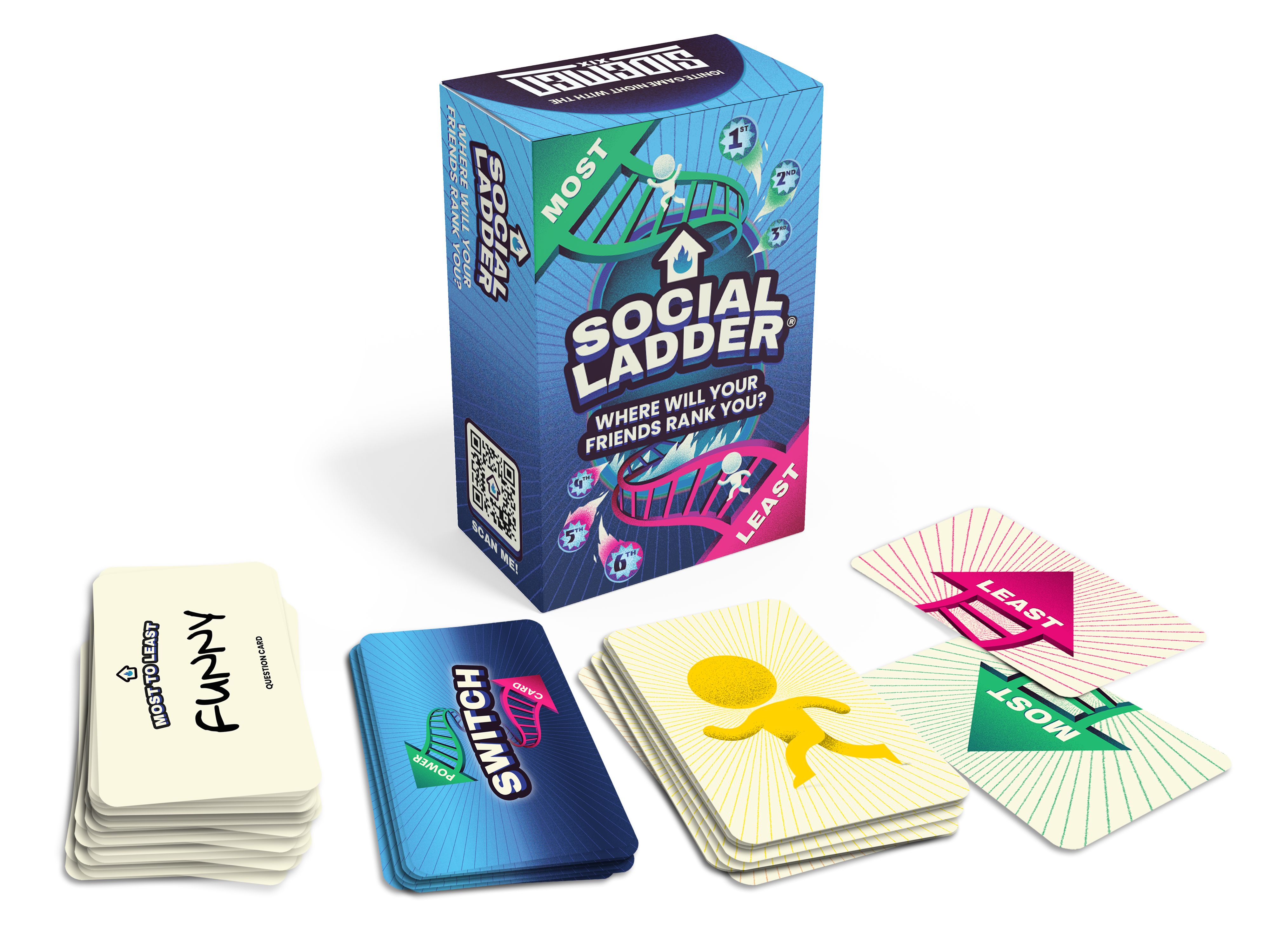 Who is the Funniest in your friendship group? Who is the second most Intelligent? Who is the least Honest? SOCIAL LADDER isn't just a game, it’s a social lube. It's the excuse to say what you've always thought! Ignite hilarious social drama, discussion and excitement anywhere you go. First off, PICK A QUESTION! e.g. most to least likely to win a fight. Then, RANK YOUR FRIENDS! Place your friends on a scale from Most to Least, including yourself! Time to GUESS YOUR POSITION! Fight for your spot by arguing and discussing with the group. Where were you ranked? Finally, REVEAL THE ORDER AND SEE WHO WON! The judge flips over each player's Identity Card, revealing their order. If you guessed your position correctly - you win! Suitable for 15 yrs + and available from Amazon.