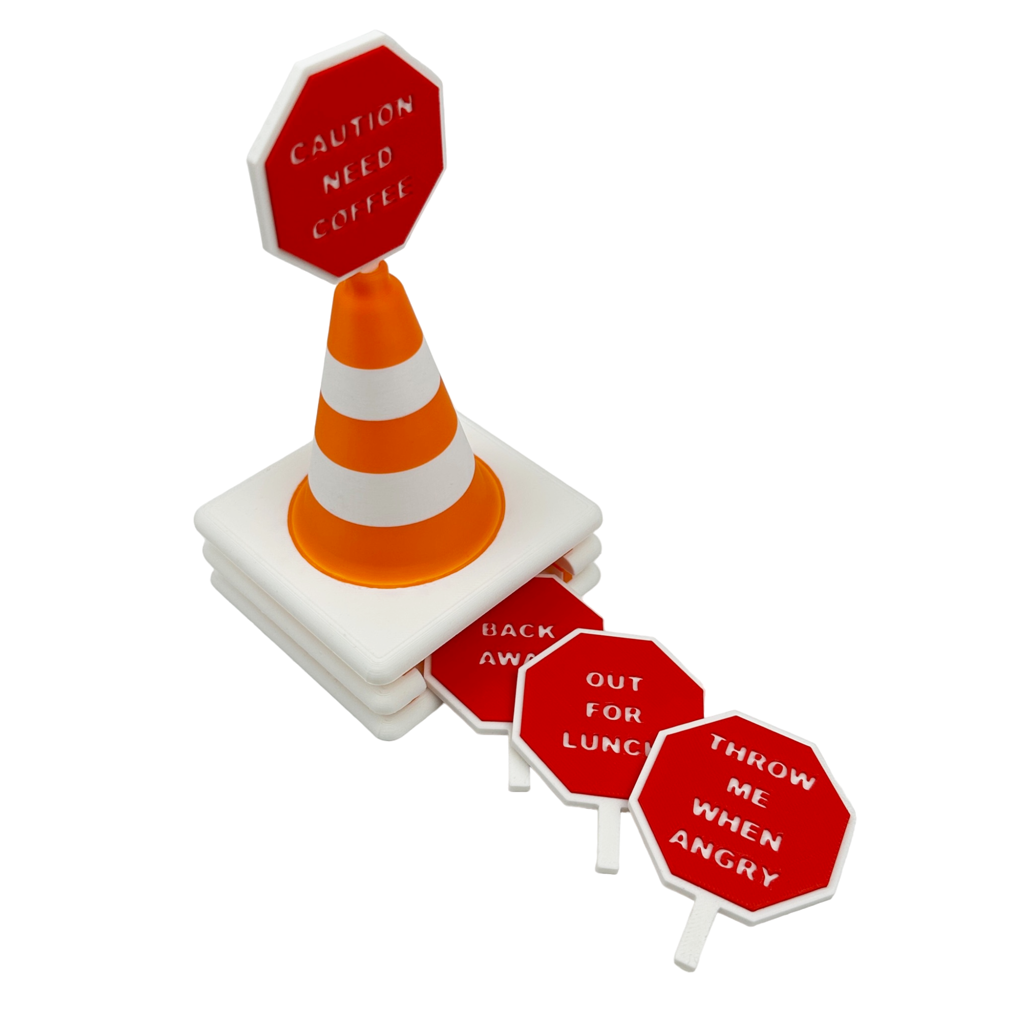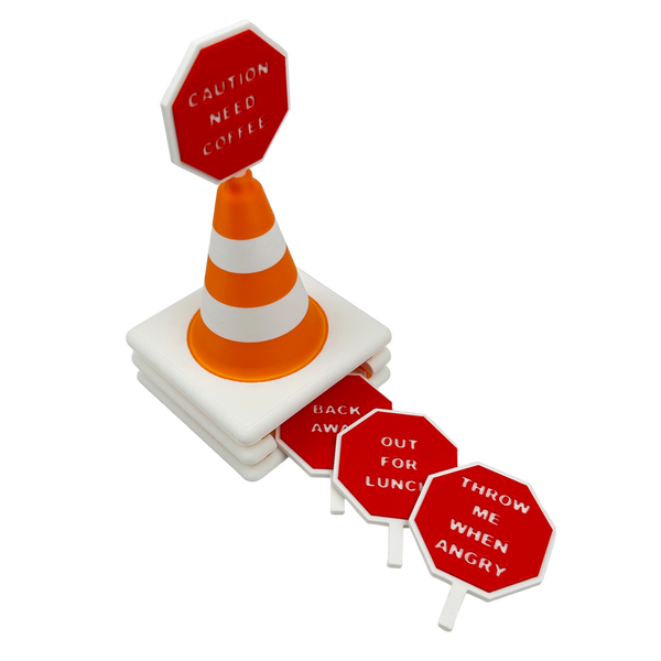 Express yourself with our Traffic Cone with Changeable Stop Signs, the perfect desk accessory to display your current mood! This miniature traffic cone comes with a set of humorous signs that you can swap out to let everyone know how you’re feeling—whether you need a coffee break, some quiet time, or are ready to chat. Fun and functional, it’s a great way to add a bit of personality to your workspace or home. An ideal gift for colleagues, friends, or anyone who enjoys a playful touch in their decor.