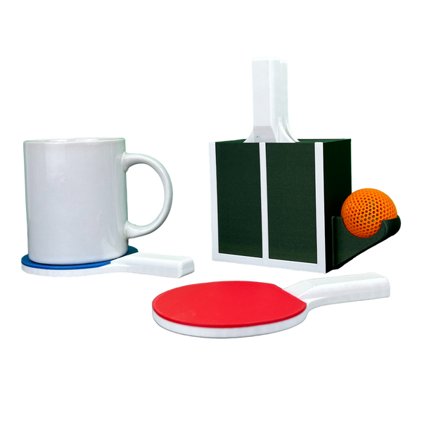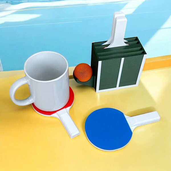 Serve up some fun with the Table Tennis Coaster set, perfect for sports enthusiasts and table tennis fans. This quirky coaster set includes coasters designed to look like mini table tennis paddles, a holder that resembles a table tennis table, and an airless ball for added charm. Not only can these coasters protect your surfaces from spills, but they also double as a mini table tennis game for impromptu fun
