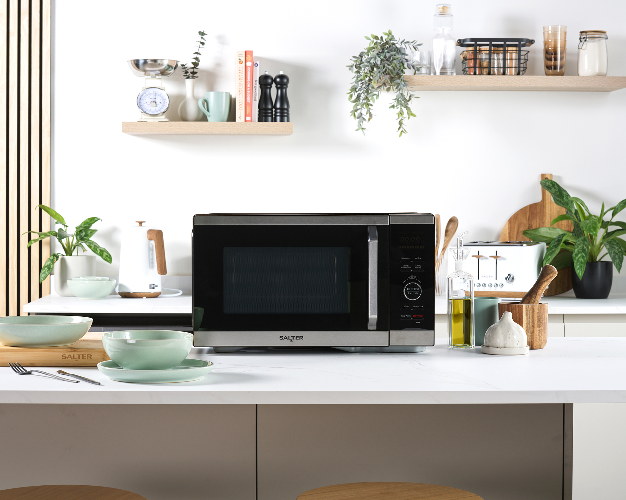 The Salter DuoWave Microwave Air Fryer combines the functions of a microwave and an air fryer in one versatile kitchen unit, without the need for separate appliances to save countertop space. The microwave function quickly defrosts and reheats food, while the air fryer feature crisps, cooks, roasts, and more with little to no oil, for a healthier cooking alternative. Featuring a generous 26L capacity, the DuoWave cooks all types of food, from reheating leftovers, to cooking a whole roast chicken, achieving perfect results every time, without the need for a conventional oven.