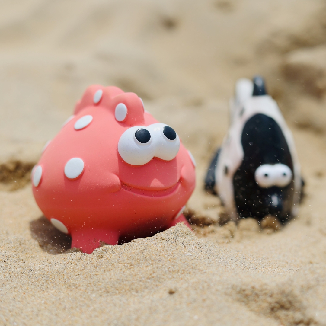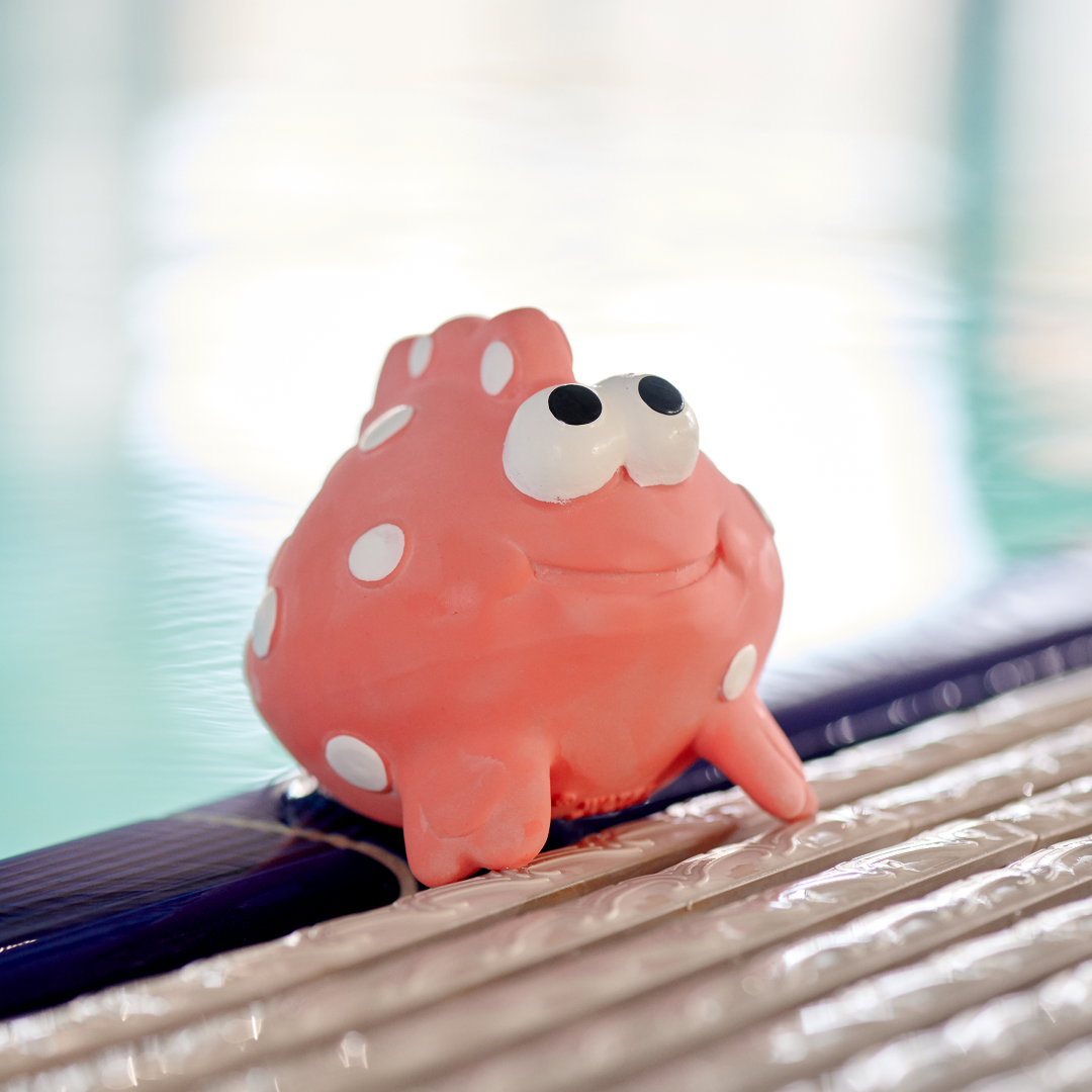 Our pink fish toy, Dotty, is part of the Water Babies Fish Family, along with Smooch, Inky, and Custard; all of them designed and named by our Water Babies swimmers. Crafted from 100% natural latex rubber sourced from the Hevea tree, soft and squeezy, this bath toy is phthalate-free and brightly coloured using food-grade dyes, ensuring it is safe for babies to chew. It is hand-painted and has been rigorously tested for use from birth, which makes it a great teething toy. The toy is fully sealed for enhanced hygiene, preventing any build-up of unwanted substances inside. Ideal for bath time, and perfect size for little hands to hold and grab, it encourages babies to reach forward in the water, promoting muscle development. Teething toys also help soothe babies and provide sensory stimulation, which helps baby’s brain development and helps them to learn about the world around them. Editor's Choice at Made for Mums Awards 2024. Winner of the Loved By Parents awards 2019 - Best Bath Time product, Platinum award! In the words of parent tester Marie, who tested our fish toys with their 7-month-old son: "The quality of this bath toy is excellent. The rubber appears to be robust and the ink good quality. It was bright and eye catching, and I think the big eyes on the fish attracted the attention of my baby. I loved the fact it didn't have any air holes in it, I'm paranoid about those toys that grow mould after a while but this won't and it's really reassuring."