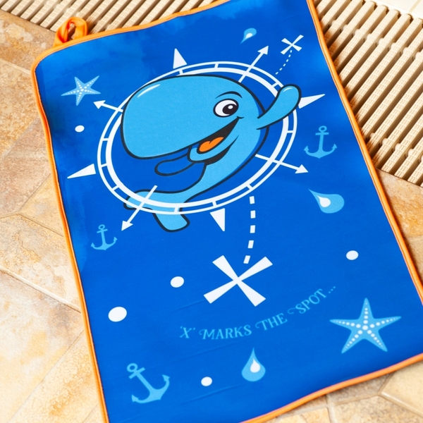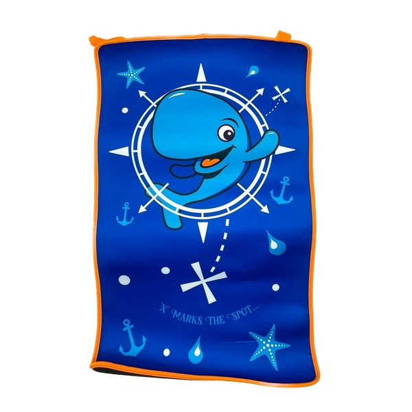 Now featuring a vibrant design with Bubba the Whale, this water resistant changing mat is perfect for use before and after swimming lessons. Made from 3mm neoprene so water spills or damp swimsuits won't ruin it, it provides soft padding and extra cushioning for comfort and support. Ideal for placing on the poolside, ensuring a cozy and safe surface for babies to lay on for a quick change, it's also great for putting them on while jumping safely into the pool. The mat measures 50 x 75cm with a 4mm depth, offering the perfect size for changing and poolside preparation. Compact and lightweight for portability, it also features a hassle-free fold-and-go design with elastic loops, rolling up for easy carrying. Crafted with care and tailored for convenience, this changing mat is a must-have accessory for baby swimming.