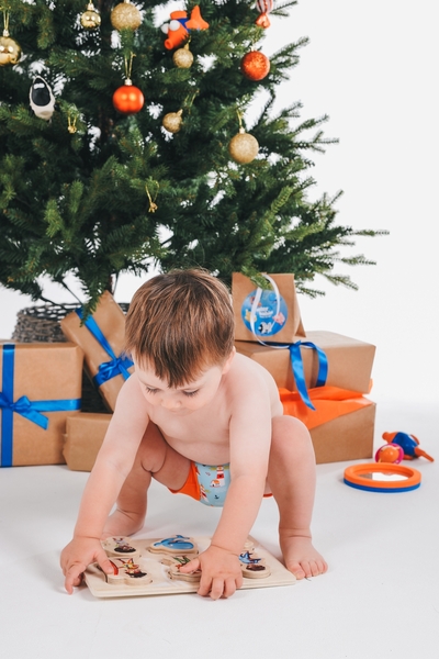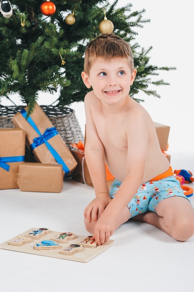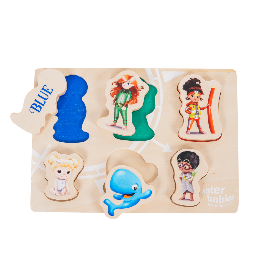 Please note: No samples available - Our Chunky Wooden Puzzle is a great way of introducing little ones to the world of numbers and colours. Specially designed for toddlers aged 1 year and up, this sturdy puzzle features Bubba and the Swimvincibles, beloved characters from our baby swimming lessons making learning fun and engaging. Each puzzle piece reveals a number or a colour—1, 2, and 3, and vibrant shades of blue, green, and orange—underneath, encouraging early learning through matching and exploration. The large, easy-to-hold wooden pieces are perfect for little hands, promoting hand-eye coordination and fine motor skills. Crafted from durable, child-safe wood, this puzzle is a playful way to build foundational skills in a fun, Water Babies-themed way!