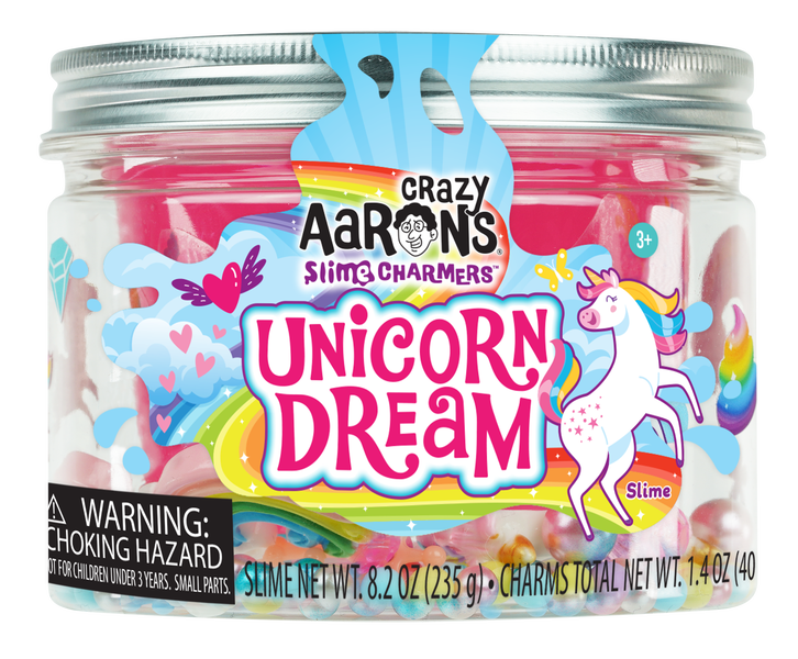 Introducing the newest addition to the Crazy Aarons family: the Slime Charmers™ range! This brand-new collection is all about sensory play. With 6 unique options including Dino Dew, Mermaid Magic, Cosmic Matter, Unicorn Dream, Swamp Water and Dumpster Dive, each slime is packed with themed charms, textures, and scents, turning a simple jar of slime into a world of magical possibilities.