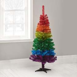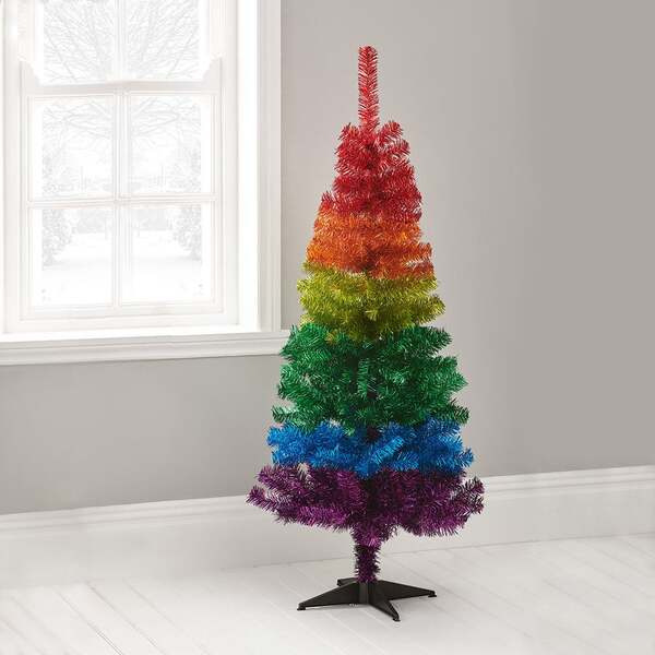Artificial Christmas tree in a rainbow design With a firm, safe base to keep it secure Easy to assemble Add a pop of colours to your Christmas decorations without taking up as much space with our five-foot slim rainbow Christmas tree. This easy-to-assemble artificial tree comes complete with a firm, safe base and adjustable branches. Ideal for homes with little ones or pets, the colourful faux tree leaves you to choose your favourite decorations and lights. Dimensions: 5ft (152.4cm) x 2.17ft (66cm). Indoor use only. Don't forget to check out our fantastic range of tree decorations for some added sparkle this Christmas! Assembly required.