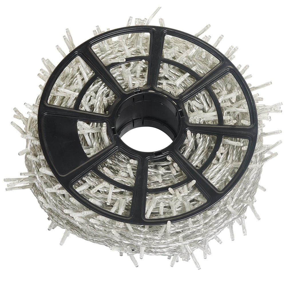 Features 1000 warm white LEDs with a clear cable 8 different light effects with a memory controller Suitable for both indoors and outdoors Make your home shimmer and get it ready for festive celebrations with our multifunction string lights. With 1000 warm white LEDs with a 64.9 metre-long clear cable, the lights can be used indoors and outdoors to add a touch of brightness. The Christmas light features eight different light effects that can be controlled using the provided memory controller. Plus, it comes with a plastic reel for easy storage. The total length of the cable: is 64.9m. The number of bulbs: 1000. Colour of LED: Warm White. Cable colour: Clear Function: 8 Effects Indoor use: Yes. Outdoor use: Yes. Battery included. No Distance to first bulb: 5m. Distance from bulb to bulb: 6cm. Total wattage of chain: 10W. Normal bulb rating: 3V/0.06W. Transformer included: Yes. Transformer model: JT-DC31V12W. Input voltage: 220-240V~. Output voltage: DC 31V. Directions for use: Please follow these instructions carefully to ensure safe and satisfactory use of this product. Although this product can be used outdoors, the transformer should remain indoors at all times. Plug into the socket and switch the socket on to turn the lights on. Repeatedly press the button on the controller box to select your preferred lighting pattern. Disconnect from the socket or turn the socket off to turn off lights. This product is provided with a memory controller and it will retain the same functio