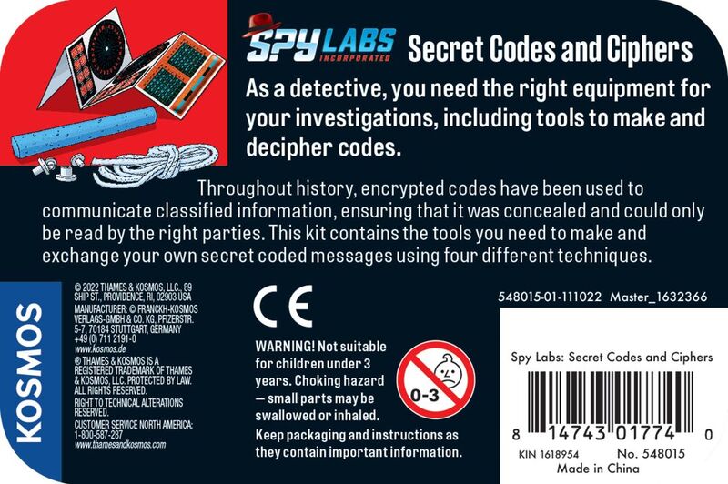 As a detective, you need the right equipment for your investigations, including tools to make and decipher codes. Throughout history, encrypted codes have been used to communicate classified information, ensuring that it was concealed and could only be read by the right parties. This kit contains the tools you need to make and exchange your own secret coded messages using four different techniques.