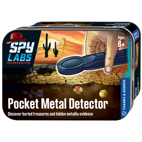 As a detective, you always need the right tools when you are on the hunt for evidence. Grab the Pocket Metal Detector when you are looking for metallic objects. If any metallic clues or pieces of evidence are hiding nearby, your Pocket Metal Detector will help you find them. This Spy Labs tool will detect metal through other materials like thin layers of soil, fabric, or paper and alert you with an audible beep. Let the hunting begin!