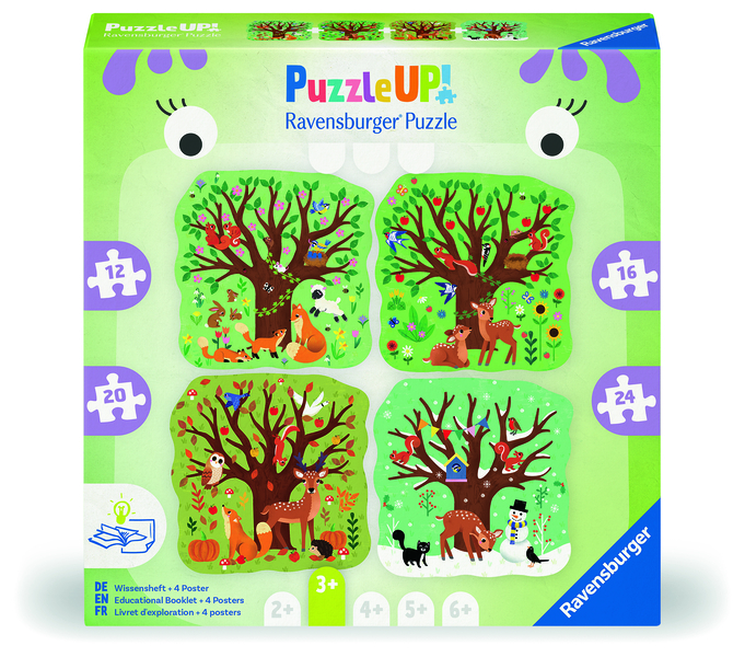 There are four puzzles inside the box showcasing the four seasons. The puzzles increase in piece count and there are talking and learning points included too. Puzzles are 12, 16, 20 and 24 pc. Suitable from age 3+ Please see our press release section for our Positively Puzzling puzzles and wellbeing info.