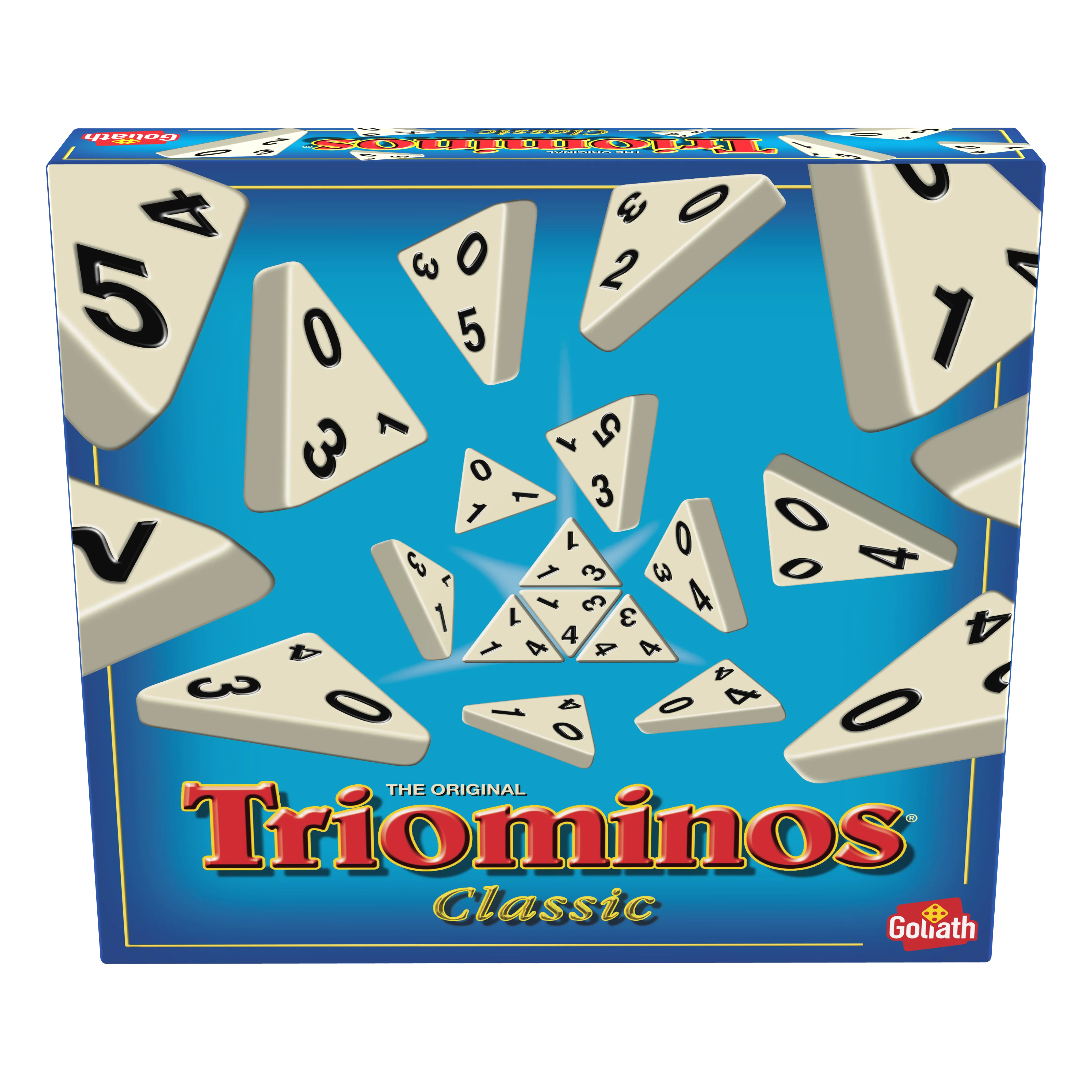 The classic triangular domino game! Score points by matching numbers on the three-sided pieces. Contains 56 playing tiles with brass spinners, 4 plastic racks, and complete instructions.