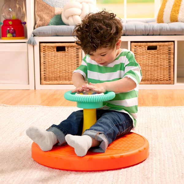 Hop on, grab the handle, and get ready to play with the classic Battat Twist & Spin Spinning Activity Toy! Little ones can keep active as they explore the colourful ball popper, and control the speed of their spins. Just twist the handle to spin, and push the ball popper to watch them pop, pop, pop for even more fun! Kids can develop essential motor skills and coordination as they play, with all sorts of sensory textures to discover. With simple interaction, little ones can twist and spin with colourful popping toy play!