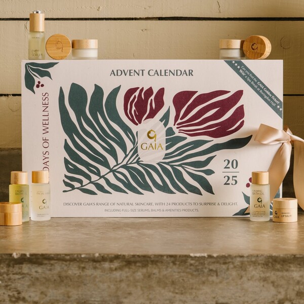 Embrace the magic of the festive season with GAIA's Advent Calendar, a curated selection of skincare items to surprise and delight you every day until Christmas. Discover GAIA's nourishing range of products, featuring 24 items from their bath, body, and face ranges, including full-size facial serums, a selection of 100ml amenities, and award-winning skincare products, valued at over £300. Boost your wellbeing and encourage self-care every day in the lead-up to the festive season. Plus, one lucky customer will discover a Golden Ticket in their Advent Calendar, gifting them a spa break at the 5-star Boringdon Hall.
