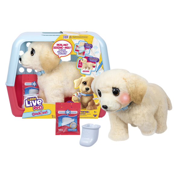 Truly transform and heal your puppy and see him go from sad and limping, to happy, healed and walking! Wet the bandages and wrap it around the magic cast. Once dry, have fun decorating your puppy's cast! Your puppy needs lots of love and care to get better! Puppy reacts to pats and cuddles, and loves getting help with walking to strengthen his leg! Cooper the retriever is so interactive as he walks, reacts to your touch, has glowing cheeks & the most adorable puppy sounds When Cooper is all healed, you can take him for walks, cuddle & play with him! Transform your carrier to a vet tray when its time to care for your puppy