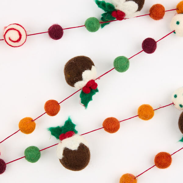 Celebrate the holidays with this Christmas Pudding Felt Garland, that has been lovingly handmade by artisans in Nepal. The perfect colourful and inviting addition to your festive decorations! Dimensions: H 140 mm x W 55 mm x D 40 mm Handmade in Nepal