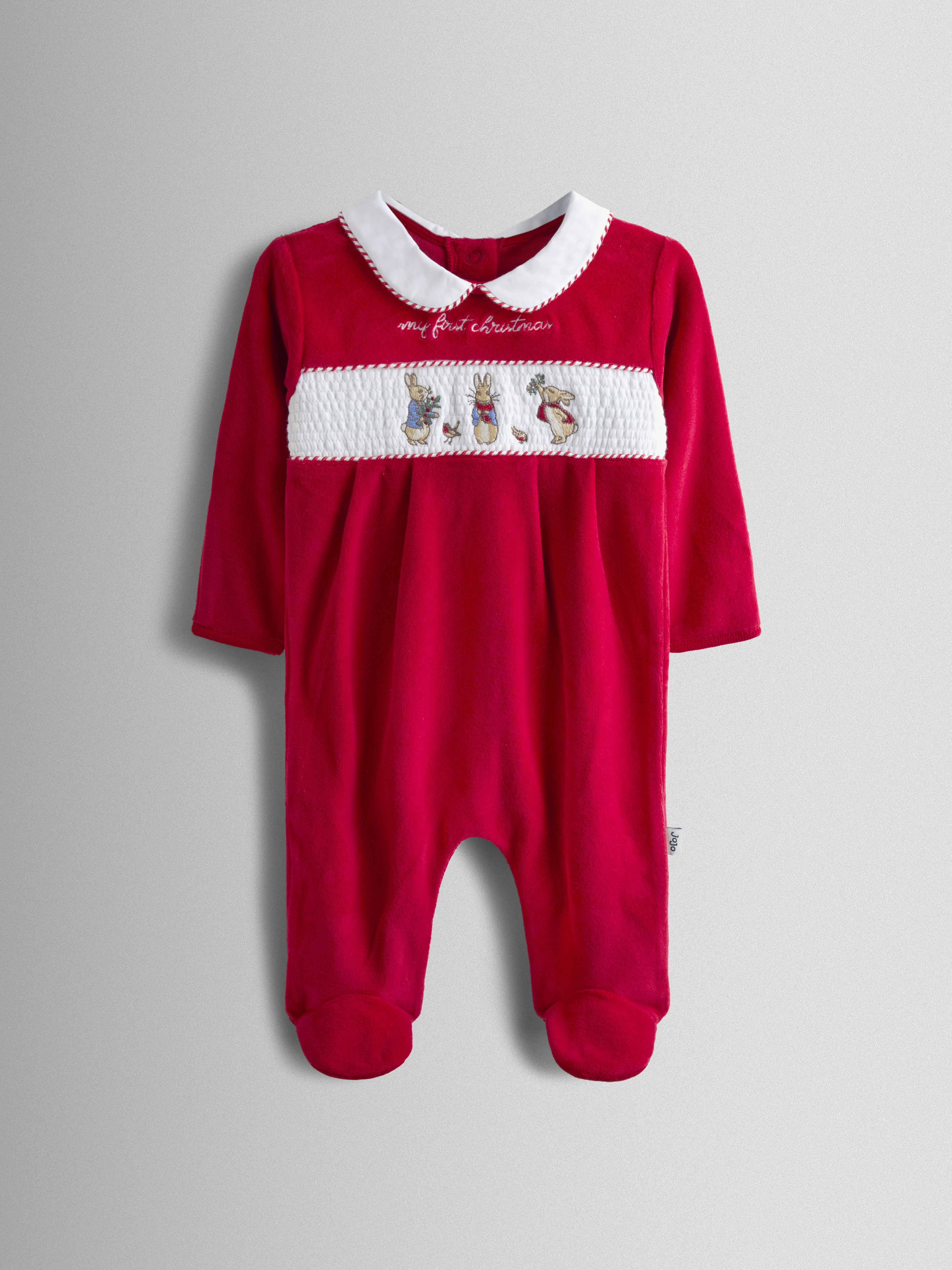 Keywords All In One , Christmas , Embroidered , Matching Styles , Mother And Baby , My First Christmas , New Baby , Peter Rabbit , Red , Sleepsuit , Velour