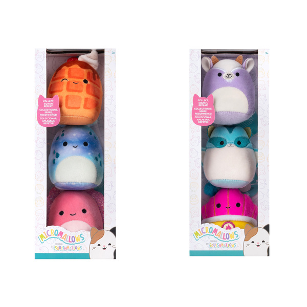 Micromallows are tiny but mighty! These Micromallows plush 3-Pack's include Squishmallows favourites. Which pack will you receive? Compatible with all Micromallows Accessory and Storage Display sets, the plush might be small, but the possibilities are endless.