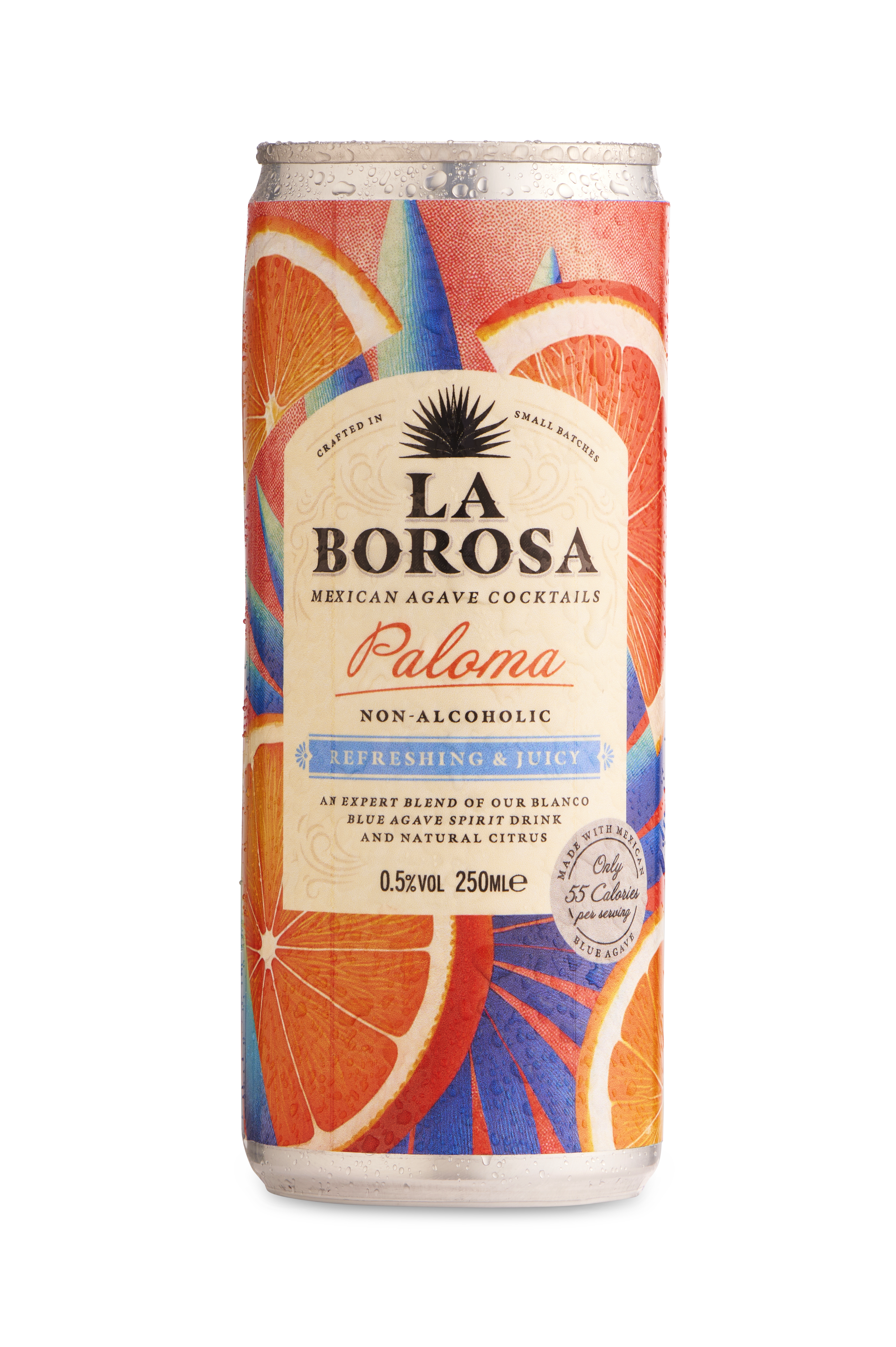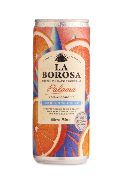 La Borosa is a 100% Blue Agave, alcohol-free spirit. Crafted using traditional methods, starting with hand-chopped blue agave cooked in brick ovens, which is then blended with the spirit of tequila, before being gently mellowed with oak; for a smooth, complex flavour that’s bold enough to sip, stir or serve straight. Available in 700ml bottles and 250ml cans of Margarita and Paloma.