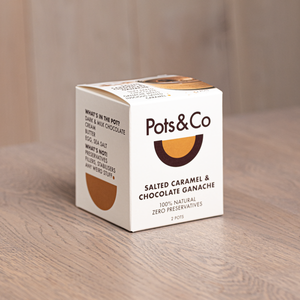 Our 'Salted Caramel & Chocolate Ganache' pot is a luxurious blend of silky baked chocolate ganache and luscious salted caramel. These intense flavours come from skill, not shortcuts. Our little pot is 100% natural and contains zero preservatives. Instead, it is full of natural ingredients beautifully harmonised together by professional chefs. Using the finest sustainably crafted chocolate from Colombia, our pot tastes and does good. Suitable for gluten free and vegetarians.