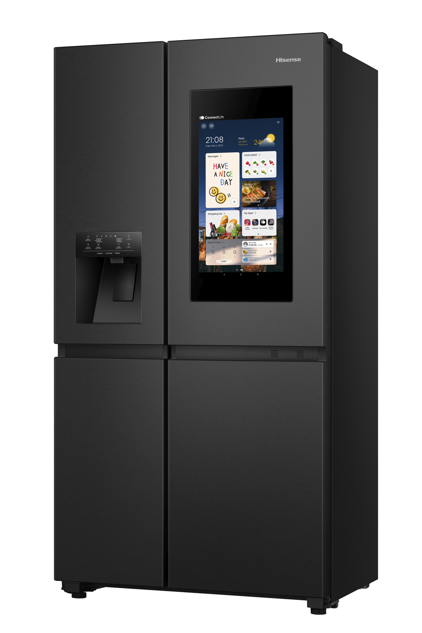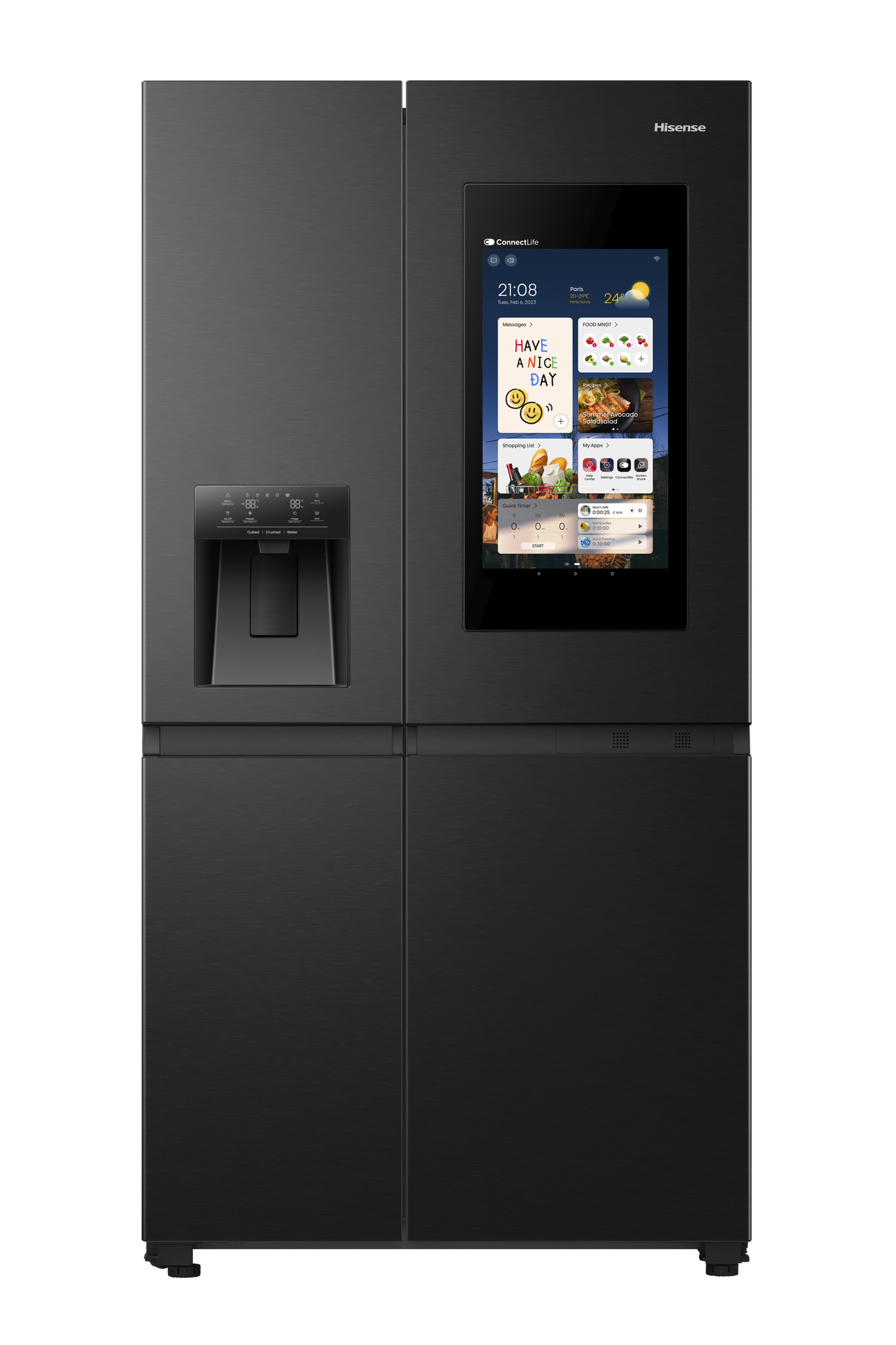 The Hisense PureFlat Eclipse American Fridge Freezer has a sleek PureFlat design and an impressive 614 litre capacity makes a seamless and functional addition to any modern kitchen. The Total No-Frost technology maintains a constant temperature, preventing irritating ice build-up and ensuring your food stays fresher for longer. The Metal-Tech Cooling evenly distributes cold air throughout the fridge, so you’ve got a product that’s both high-tech and high-performance. This model pairs as a smart hub in the heart of your home, packed with cutting-edge tech including a large built-in touch display. From here, you can manage your food storage, leave digital notes, view recipes, and even sync your calendar - all from your fridge door. One of the standout features which comes as part of this smart hub is Dish Designer, which utilises the latest AI technology to scan the contents of the user’s fridge to suggest recipes and meal ideas and has the potential to send the correct settings and information directly to your oven. You can even set dietary restrictions and meal preferences, taking all the hard work out of deciding what to have for dinner!