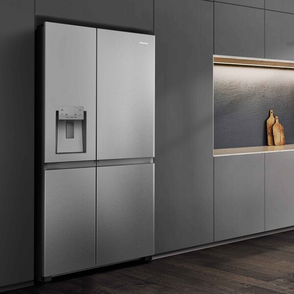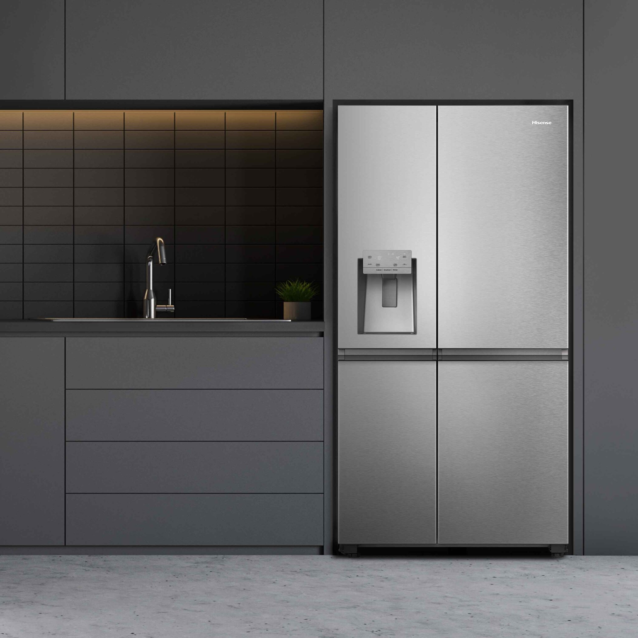 The Hisense RS818N4TIE is a capacious 632 L side-by-side fridge-freezer (417 L fridge + 215 L freezer) featuring Total No Frost technology so you never have to defrost manually. It offers a non-plumbed water & ice dispenser (with crushed/ cubed ice), LED touch controls, and a whisper-quiet inverter compressor. Interior conveniences include tempered-glass shelves, humidity-controlled crispers, multi-airflow cooling, and fast-freeze / fast-chill modes. With a sleek PureFlat design, recessed handles, door alarm, WiFi control, and a noise level of 38 dB, it perfectly blends style and functionality.