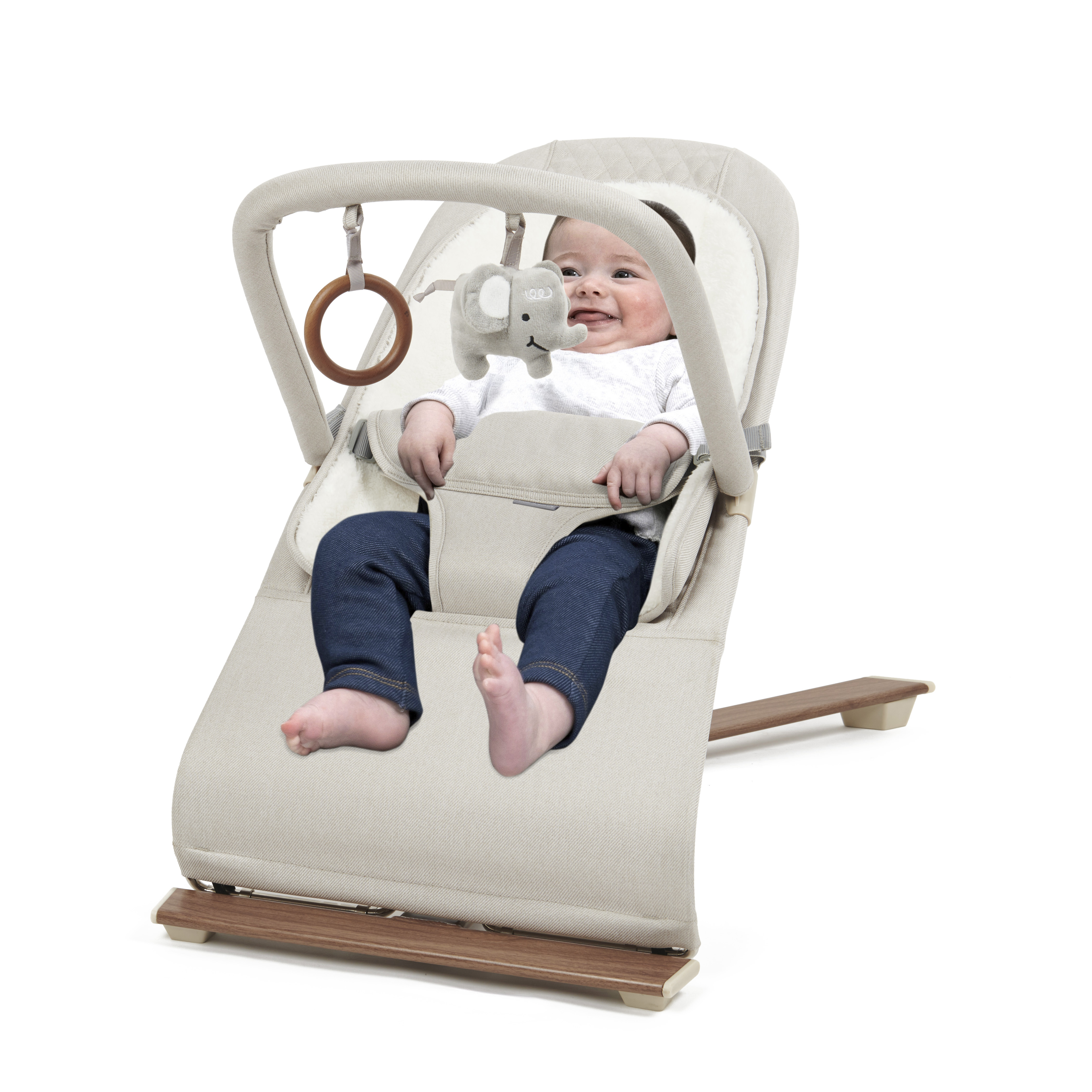 Suitable from birth to 9kg 3-point safety harness Removable toy bar with 2 toys Natural, soothing bouncing motion Develops gross motor skills Flat, compact fold No batteries required Contents: 1x baby bouncer, 1x plush liner, 1x removable toy bar, 2x plush toys