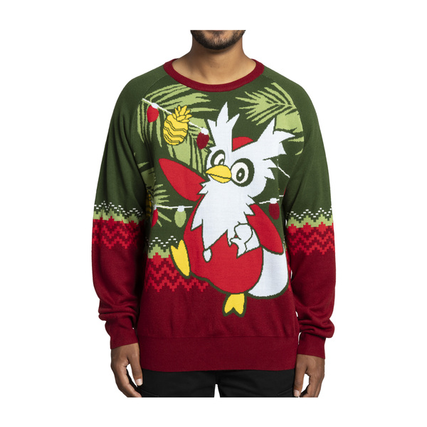 Battle winter breezes and blizzards in comfort with the help of a Pokémon friend! It's Delibird's time to shine on the front and back of this classically festive red-and-green crew neck sweater that's great for holiday parties, gift shopping, or just lounging at home.