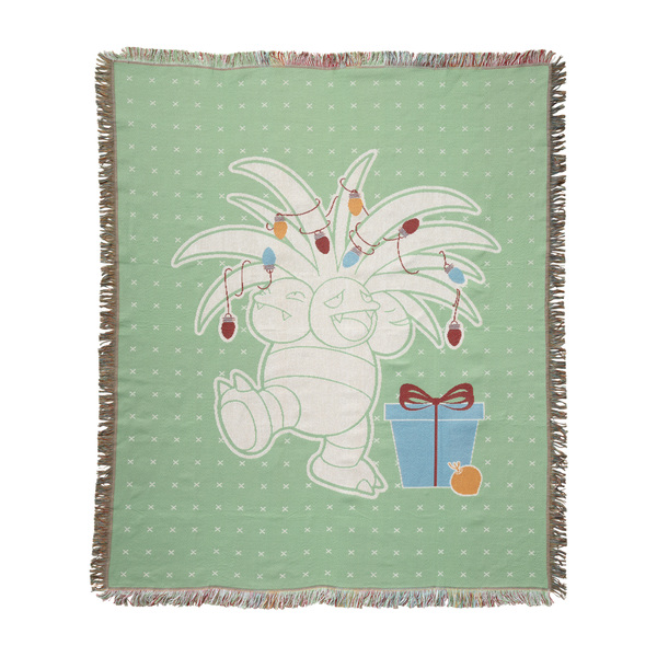 Visions of sugar plums are nice, but this festive throw blanket brings something even sweeter to snoozes and weekends—Pokémon! Exeggutor is all decked out for the holidays on the front of this warm and cozy layer.