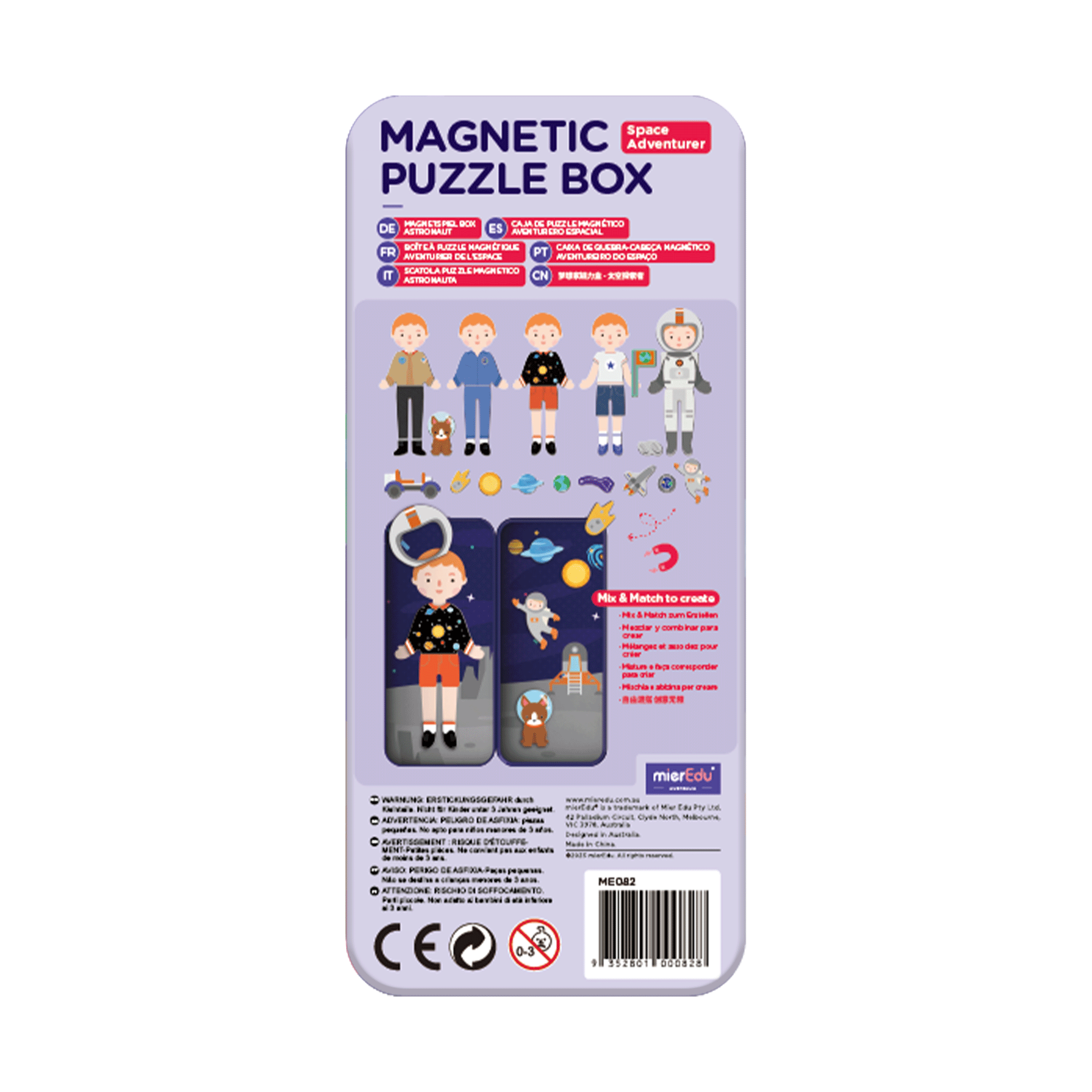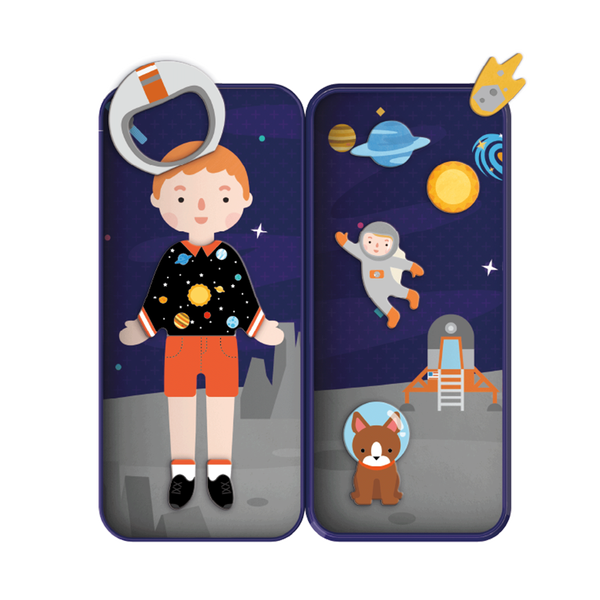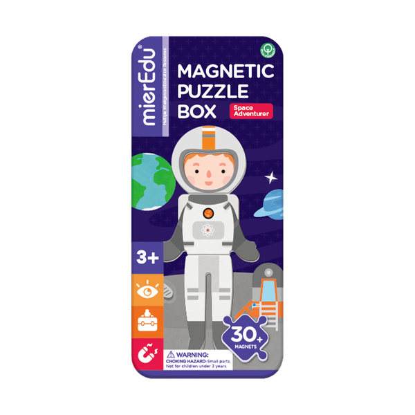 Blast off into learning with the Space Adventures Magnetic Puzzle Tin! Children aged 3+ can create and recreate their own intergalactic scenes using colorful, durable magnets. As they arrange astronauts, rockets, and planets, kids practice fine motor skills, problem-solving, and imaginative storytelling. The compact tin makes this set perfect for travel, quiet play, or screen-free fun anywhere. Key Features: Portable magnetic playset in a travel tin Includes themed magnets for building space scenes Encourages storytelling, creativity, and fine motor skills Screen-free entertainment for home or travel Suitable for ages 3+