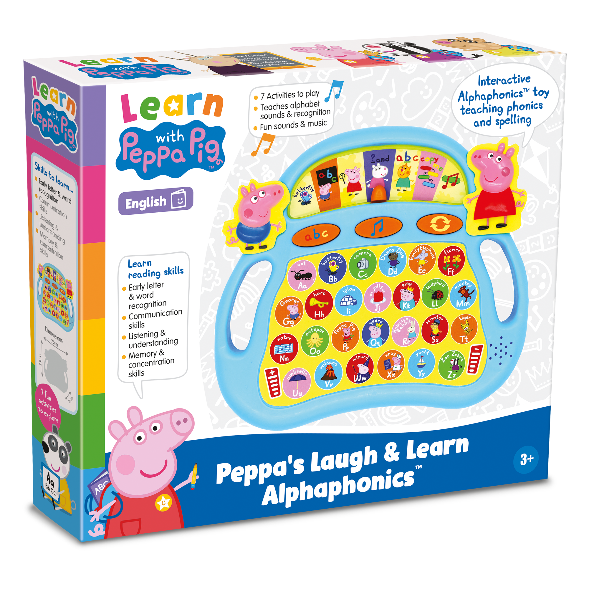 Make learning letters and sounds a fun adventure with Peppa Pig Laugh & Learn Alphaphonics! With 7 interactive activities, children can explore the alphabet, sounds, and words alongside Peppa and her friends.