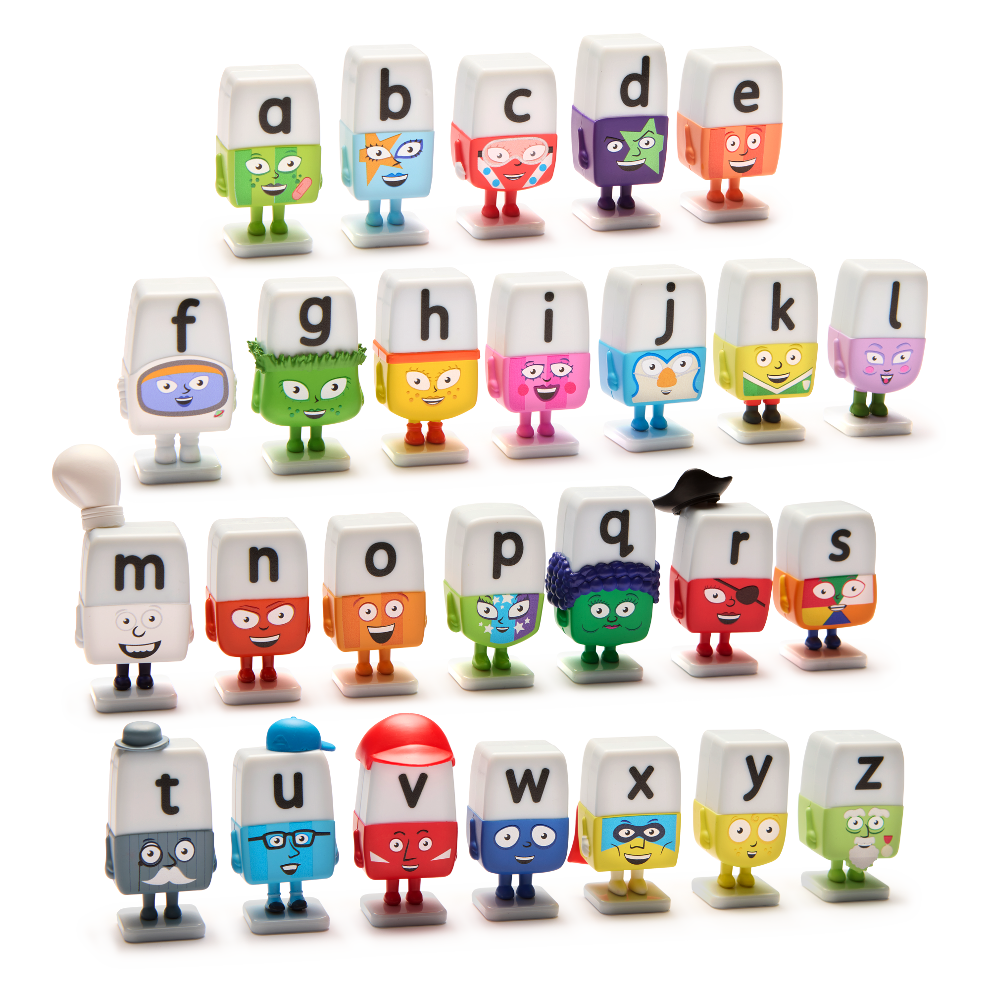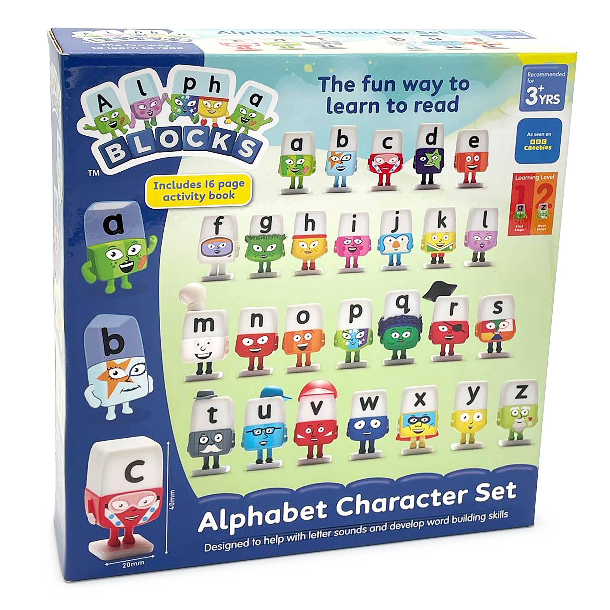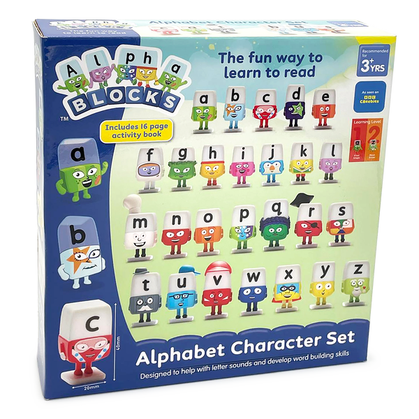 Bring the magical world of the Alphablocks home with this complete set of 26 characters, one for every letter of the alphabet. This character set will help children learn phonics in a playful, hands on way. As kids explore the sounds and put the letters together, they can create real words and experience the fun of Word Magic! The familiar Alphablocks characters make words come to life and support children from their very first letter sounds all the way to confident, independent reading.