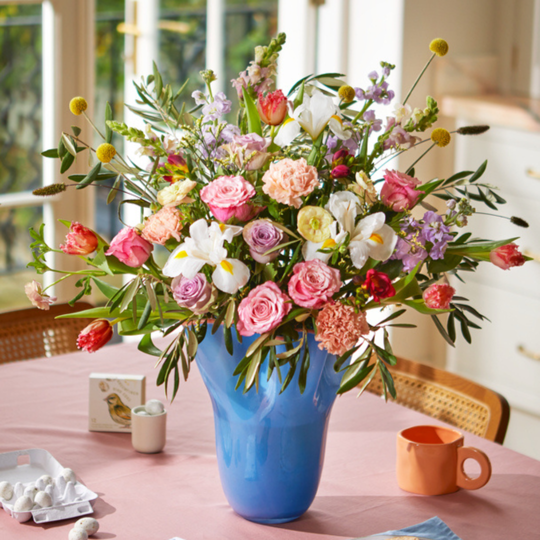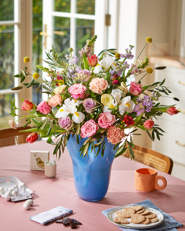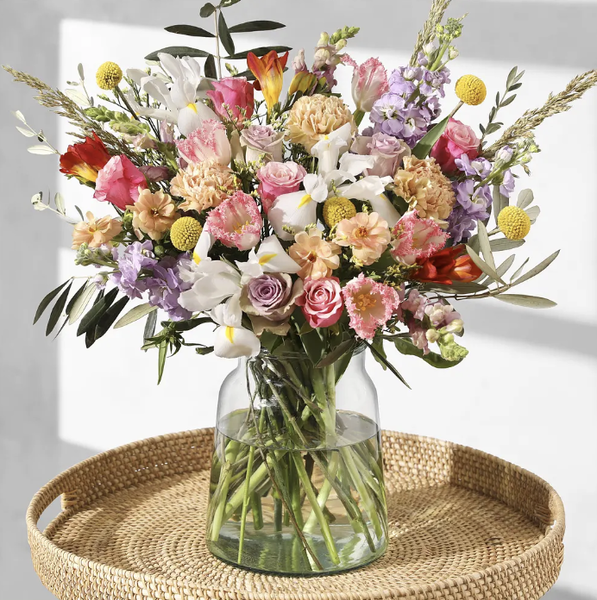 45 stems, including rosa, freesia, antirrhinum, matthiola, ranunculus and tulipa
