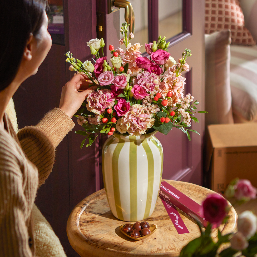 The soft antique tones of this bouquet evoke all the same feels of curling up in an old armchair. Calm, cosy, and completely at peace. 17 stems, including Hypericum, Statice, Stocks, Lisianthus and Carnations.