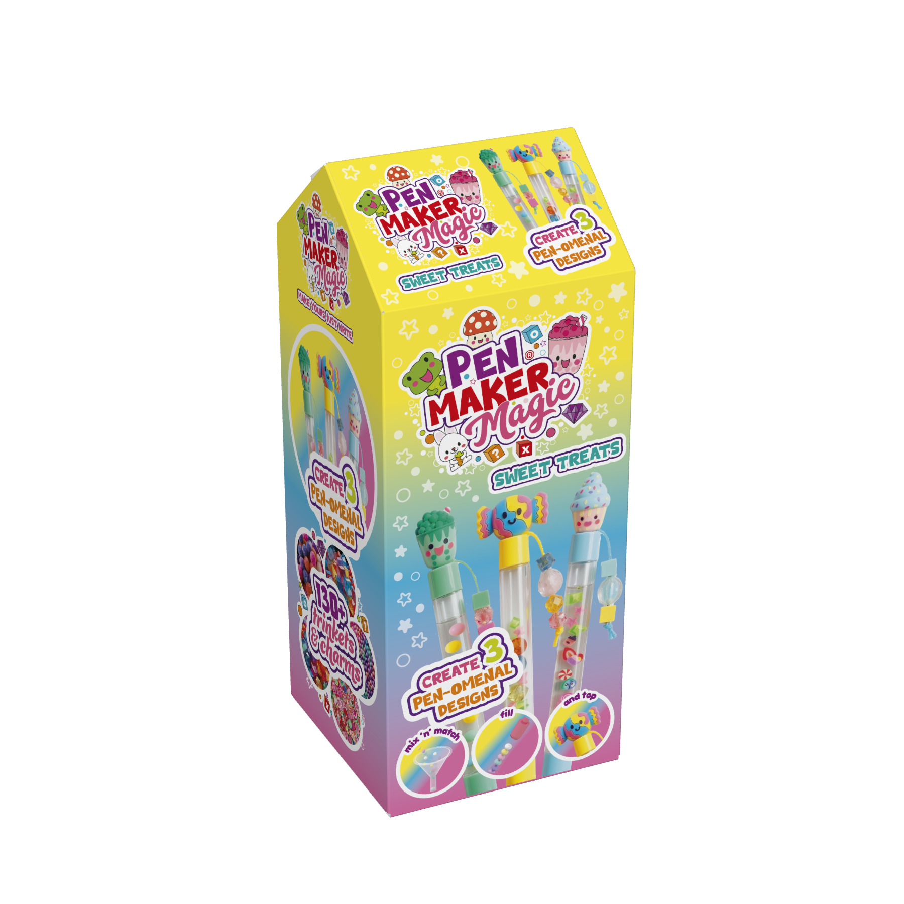 Made for Kids Who Love to Create, Pen Maker Magic is designed especially for kids with big imaginations, bold personalities and a flair for creativity. It's for kids who want more than just a pen - they want an experience! There’s no write or wrong way to play, so ink outside the box and create 3 stu-PEN-dous pen creations with this super-fun treats themed Mini kit! It comes with 70+ trinkets and charms for ultimate customisation. Mix ’n’ match adorable pen pals, beads, charms, trinkets and magic gel to create unique designs to swap and share with friends.