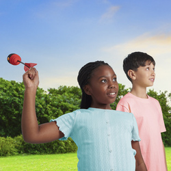 The Zooperball is the ultimate rocket-shaped, long-distance, super bounce & throw ball that can fly up to 200ft/60m. Zooperball features a foam tip so it can bounce off walls, or about anything else that stands in its way. Throw it, then let it bounce and ricochet off walls, smack it back, or even catch it. Use your imagination and create your own games and ways to play with your family and friends!