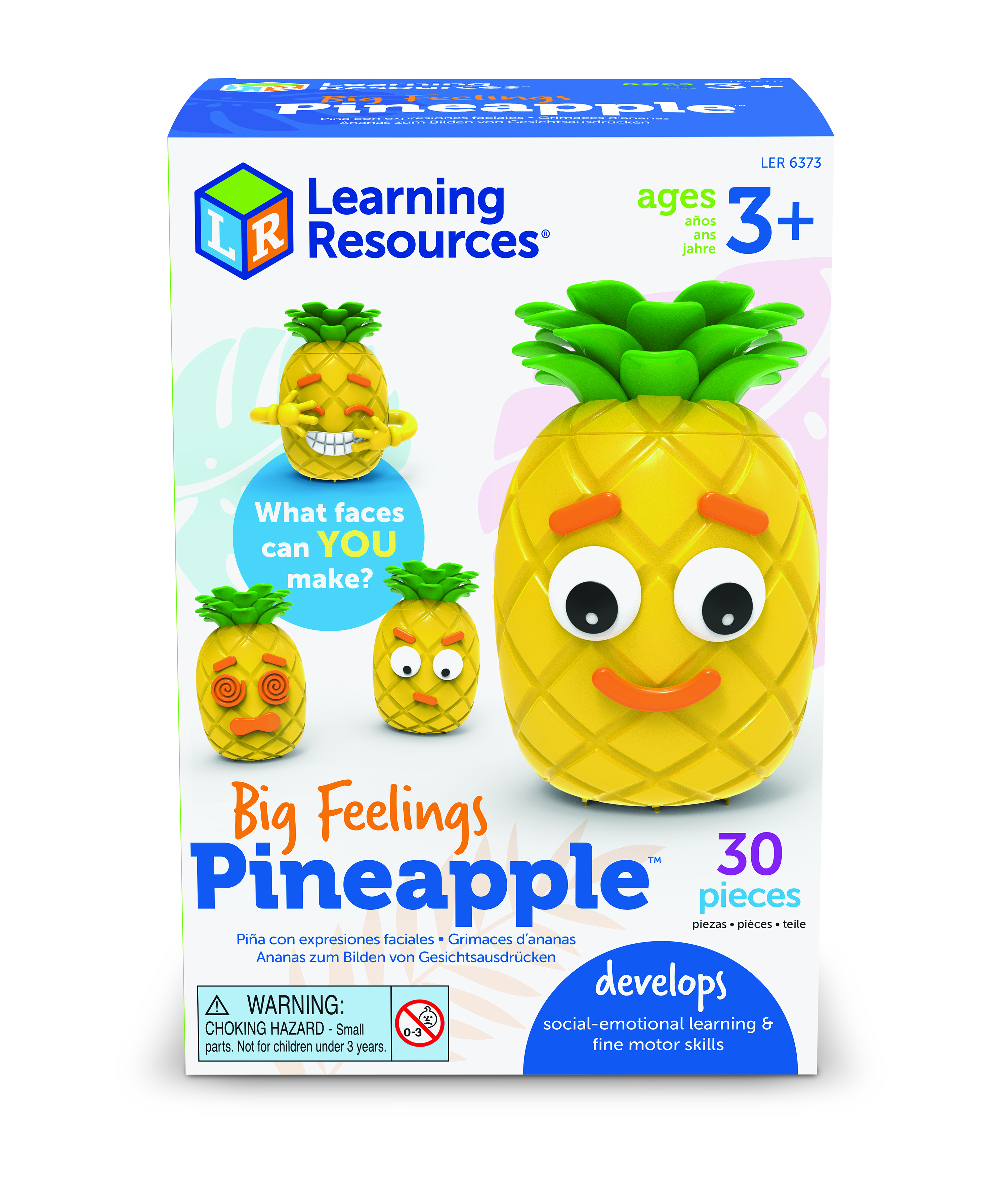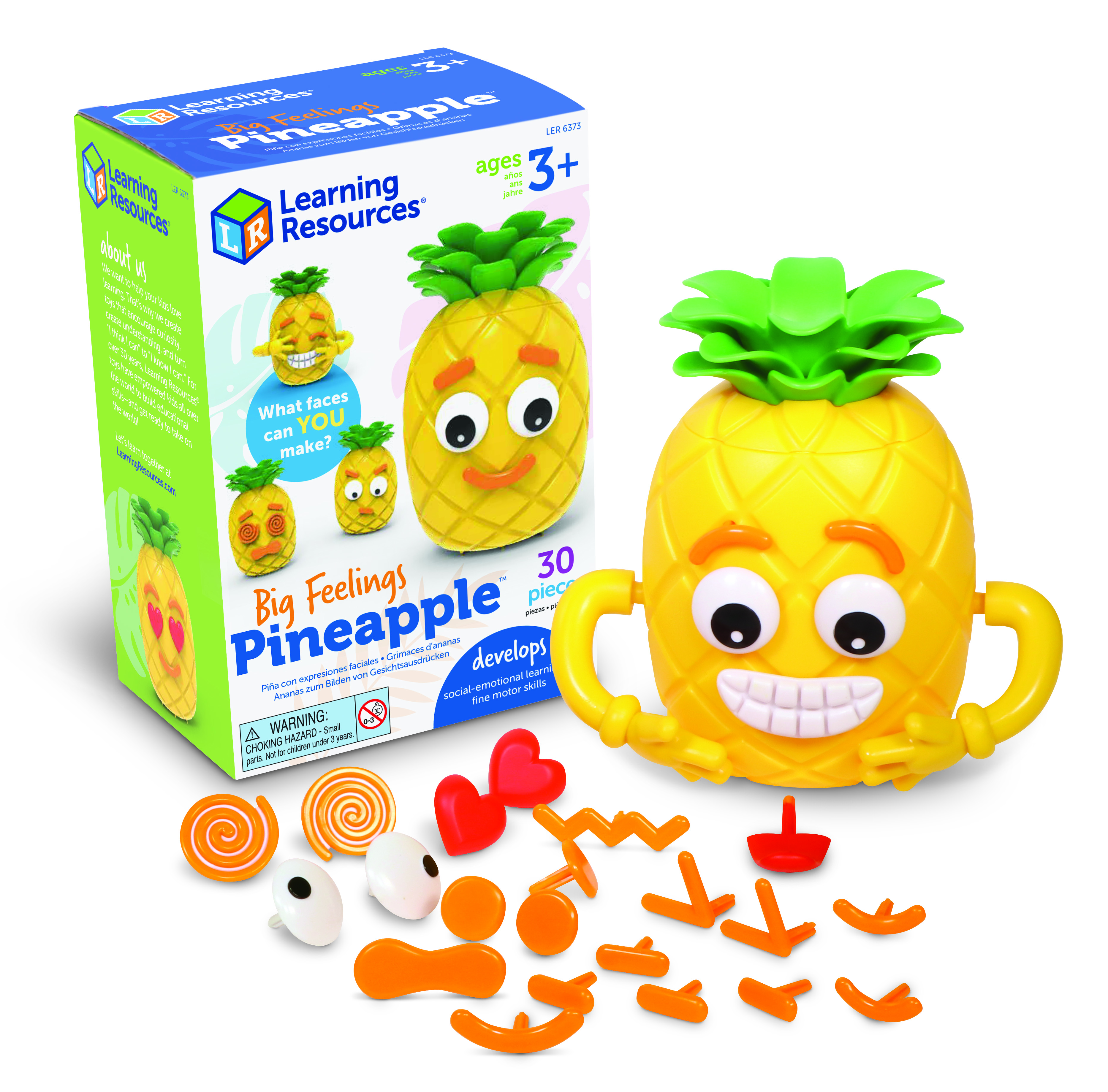 The cute Big Feelings Pineapple helps preschoolers to explore emotions and facial expressions through hands-on, social emotional learning (SEL) play. Each Big Feelings Pineapple comes with 26 facial pieces that children can mix and match to build a wide range of expressions, from joyful smiles to anxious frowns. With two sides to build on, children can compare opposite emotions and learn how feelings look on themselves and others. The Big Feelings Pineapple is a fun, tactile way to encourage emotional awareness, vocabulary development and meaningful conversations about feelings at home or in the classroom.