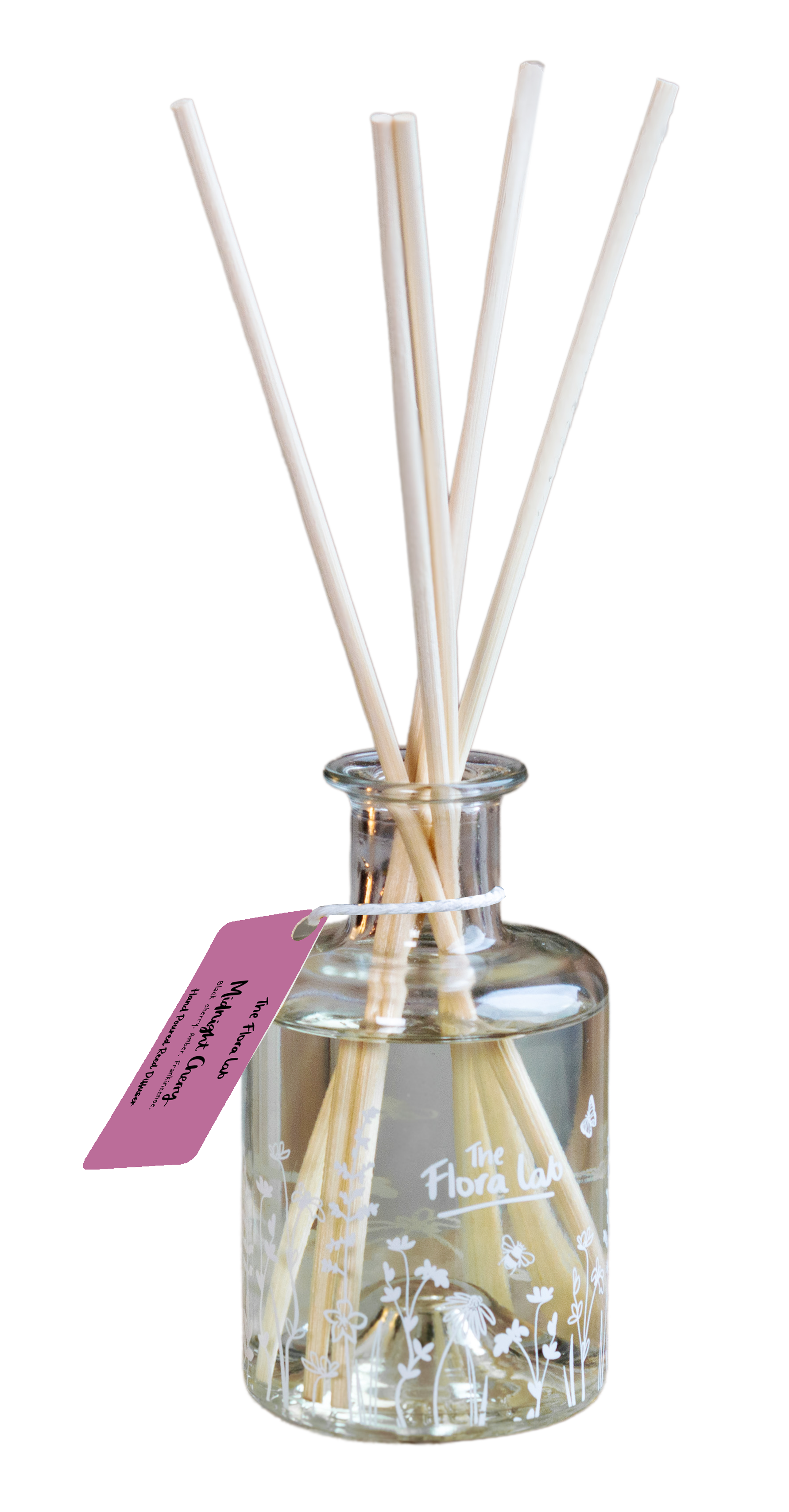 Unveil the allure of the night with our exquisite hand-poured candle, Midnight Cherry. Crafted with the utmost care and precision, this captivating scent is an opulent blend of amber, frankincense and black cherries. On the base, we have the three regal woods from the orient; Cedar, Vetivert and Patchouli. Completely luxurious, decadent and rich, this is a scent for after dark. Scent Notes Top Notes;Black Cherry | Rose. Middle Notes:Rich Amber | Frankincense Bottom Notes: Cedar | Vetiver | Patchouli Designed to be refilled, cherished, and enjoyed forever. Meet The Flora Lab Everlasting Diffuser, a beautifully crafted refillable reed diffuser that brings continuous, flameless fragrance to your home, without the waste. This premium refillable diffuser bottle is designed to stay with you for the long run: simply top up with one of our fragrance refills whenever you need a scent refresh. Beautifully scented living, made more sustainable. Hand-blended and poured in our UK studio, each Everlasting Diffuser is filled with a soy-derived base and sustainably sourced fragrance oils and paired with natural rattan reeds to deliver long-lasting fragrance that gently scents your home for up to 10+ weeks.