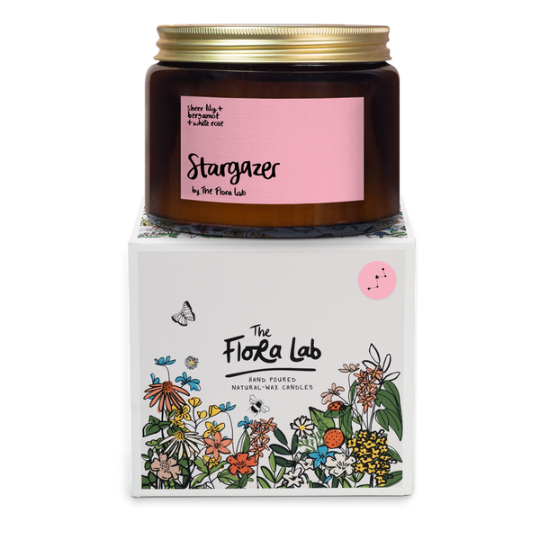 A floral fantasy that’s out of this world. Lovingly intertwined, fresh sheer Lily and delicate white Rose petals, along with a sprinkling of peach, results in Stargazer; an ethereal delight for the senses. Scent Notes Top Notes Bergamot, Plum, Peach, White Rose Middle Notes: Lily, Rose, Ylang, Jasmine Base Notes:Cedar, Sandalwood, Amber, Musk Hand Poured with a coconut and rapeseed wax. Burn time of 80-90 hours. Beautifully encased with an FSC certified Botaniacl Box that's perfect for gifting and self treating. Hand Poured with a coconut and rapeseed wax. Burn time of 30-35hours.