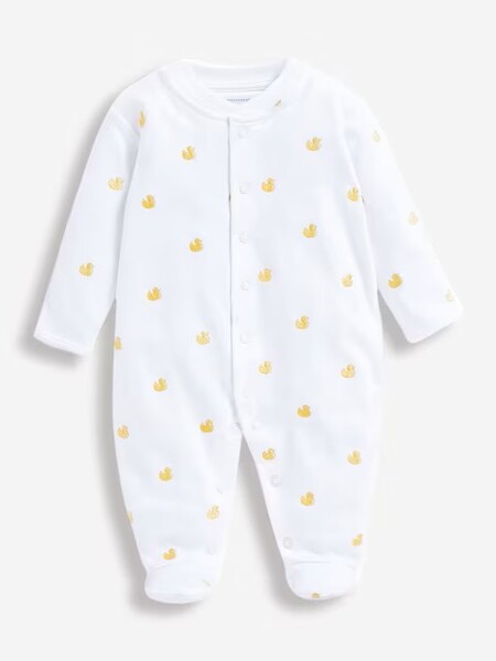 Keywords All Over Duck Embroidery , Anti-Slip Dots On Feet , Duck , Easter , Easy Dressing , Embroidered , Fold Over Scratch Cuffs , New Baby , Organic Cotton , Poppers , Round Neckline , Sleepsuit , Spring , Super Soft , White , Yellow