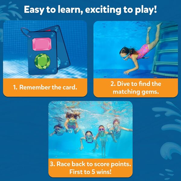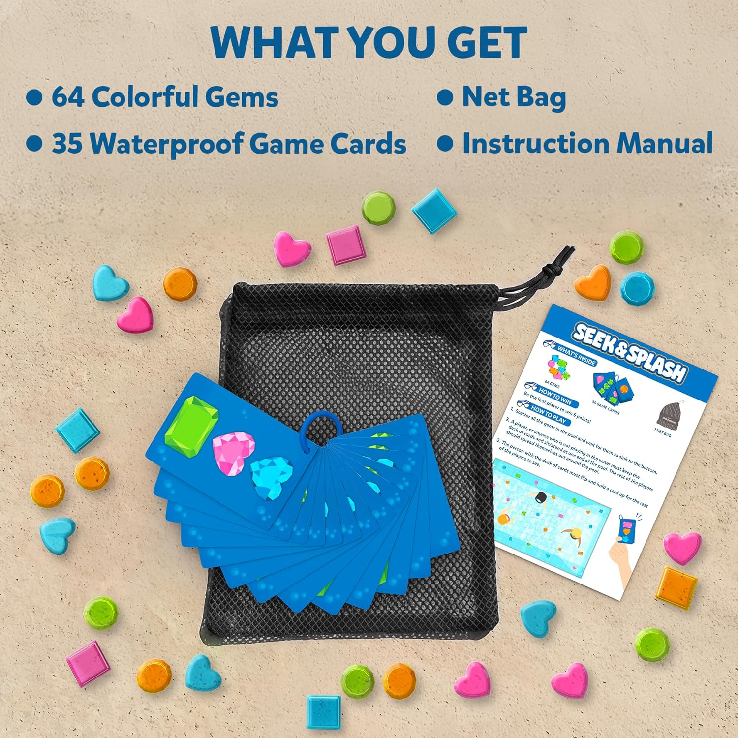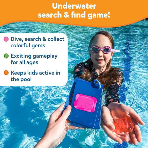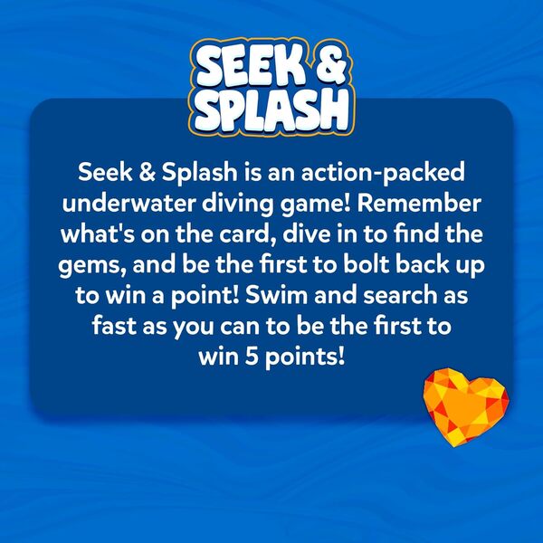 The ultimate underwater search & find game: Skillmatics Seek & Splash combines the excitement of swimming and diving games for kids. Remember what's on the card, dive in to find the gems, and race back to win points in this action-packed pool game!