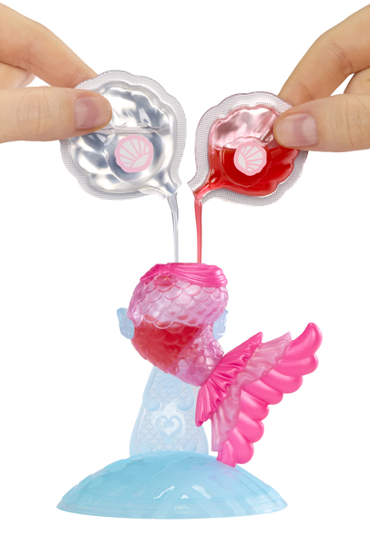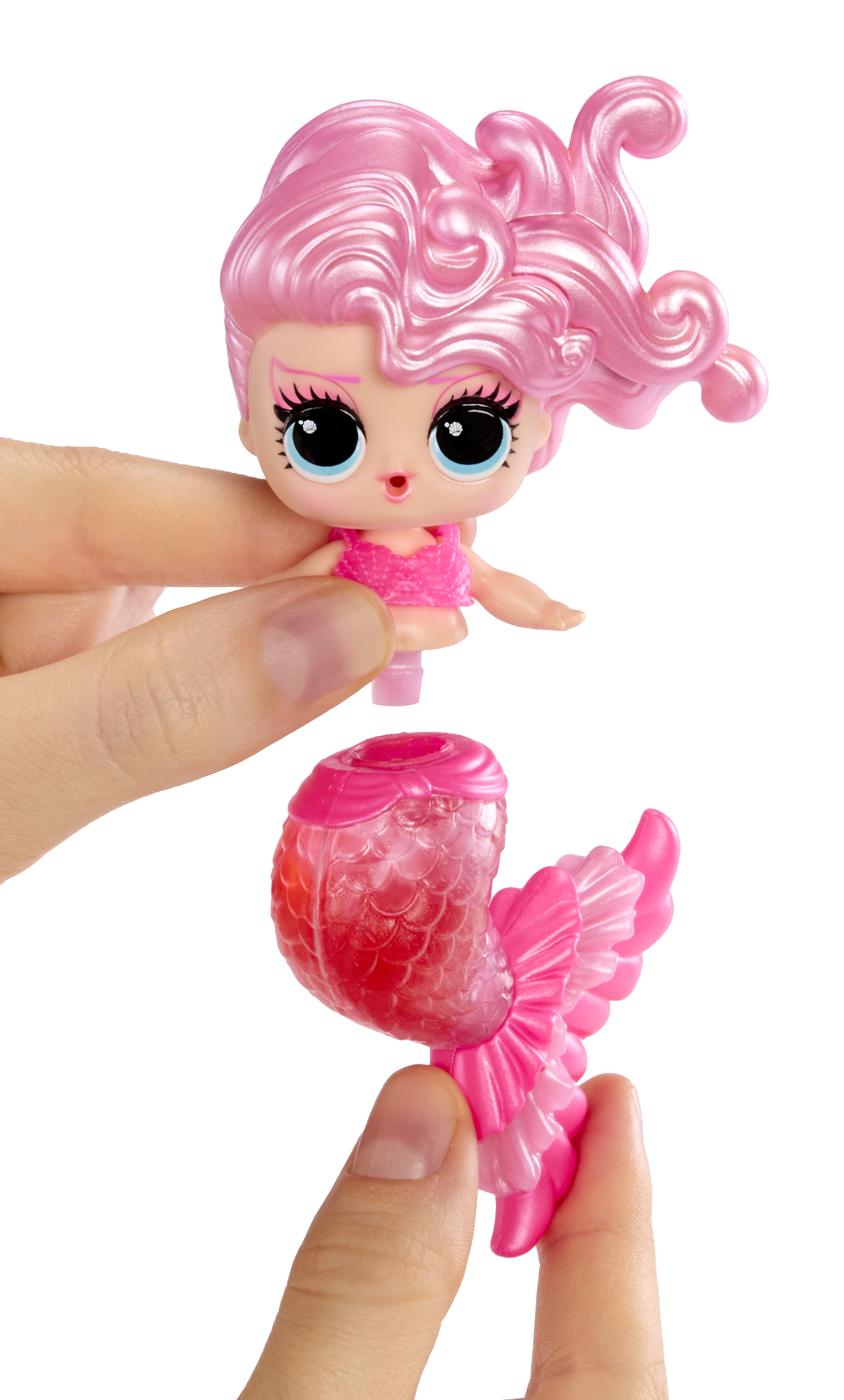 Make a splash with the all new L.O.L. Surprise! Mermaids Makeover Magic Tots, the ultimate way to play and create! With each fabulous Mermaid Tot Doll kids can mix, make, and wear lip gloss for both themselves and for their dolls. Each doll includes two magical seashells filled with your DIY lip gloss, which you can squeeze into their mermaid tail for a magical transformation! The mermaids tail fin doubles as an applicator to apply gloss on-the-go. Transform the iconic L.O.L. Surprise ball into a fishbowl-style display, perfect for water play, bath time, or a sparkling showcase for your mermaid doll.