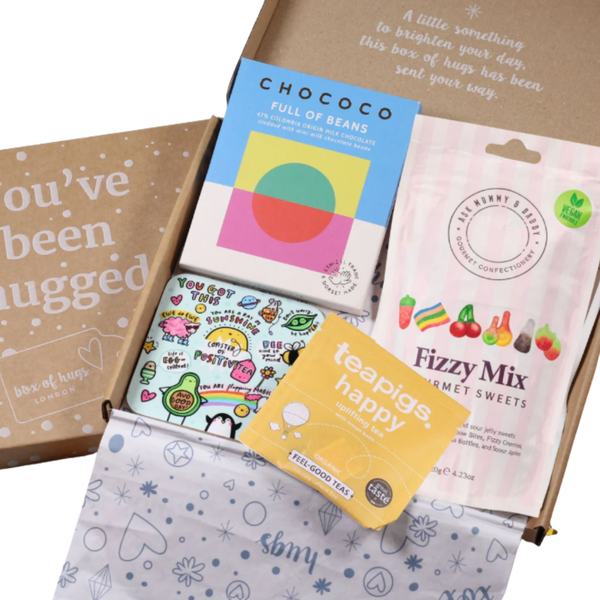 Send a little sunshine straight through their letterbox with our cheerful Letterbox Sweet Treat Gift Box – Positivity Cheer Up Package. Packed with sweet treats, uplifting tea and a colourful positivity coaster, this thoughtful gift is designed to brighten someone’s day and remind them they’ve got this. Carefully hand-packed in our ‘You’ve Been Hugged’ letterbox box, this thoughtful gift fits straight through the door and is delivered via Royal Mail 24 Tracked, making it a lovely surprise they’ll never forget. From indulgent chocolate to tasty sweets and a comforting cuppa, it’s a small box bursting with love, comfort and smiles. Inside the lid, they’ll find the reassuring message: ✨ “A little something to brighten your day, this Box of Hugs has been sent your way.” ✨