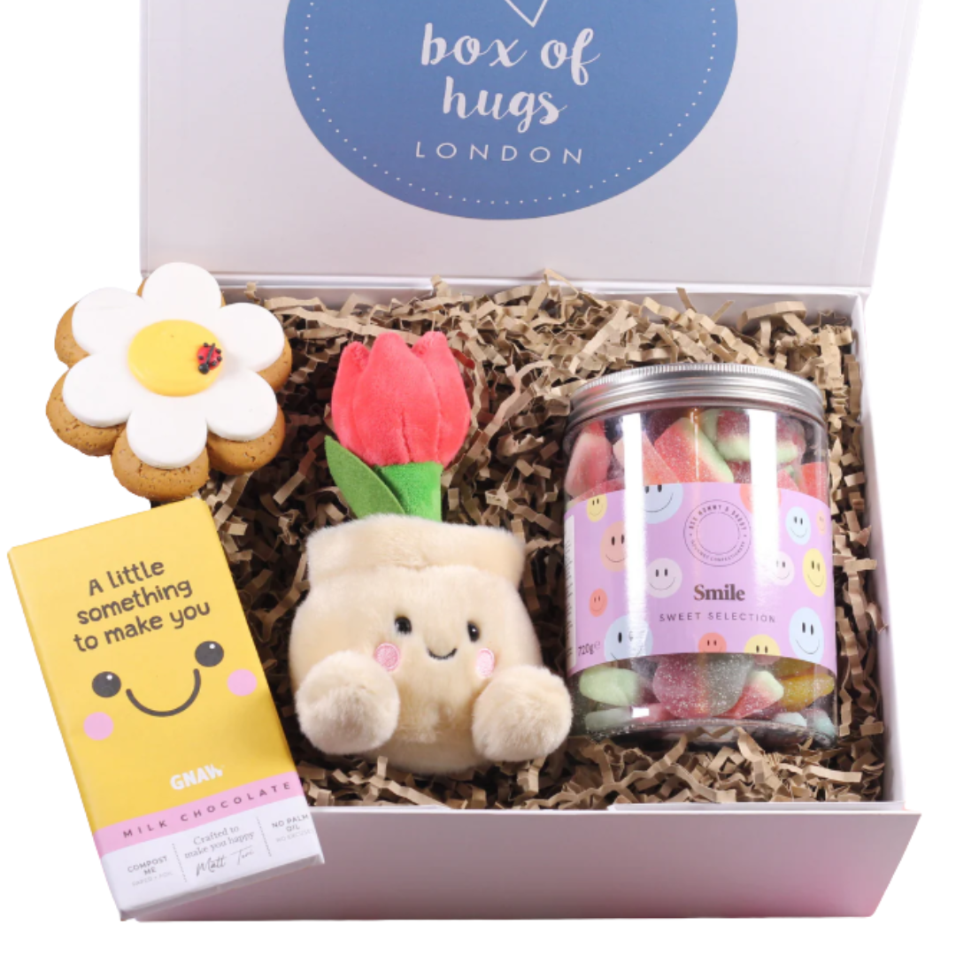 Send a burst of happiness straight to their door with our Cheer Up Gift Box – Little Sunshine Thinking of You Care Package – a joyful gift box filled with uplifting treats, sweet surprises and feel-good keepsakes. Thoughtfully curated to lift spirits, celebrate special moments or simply remind someone they’re loved, this Box of Hugs gift is perfect for birthdays, get-well wishes, thank-you gifts or just because. All of the products in our beautiful boxes have been lovingly selected and are hand packed in a keepsake magnetic white gift box. Each box includes a card, which you can add a personalised message to, making your hug even more special ????