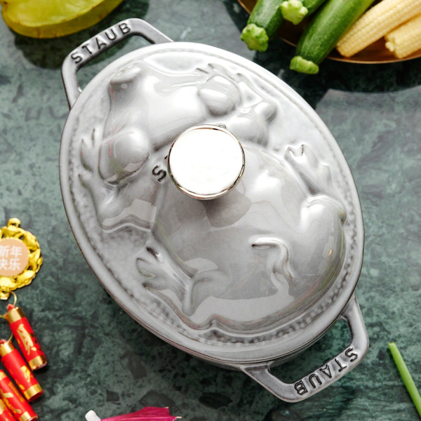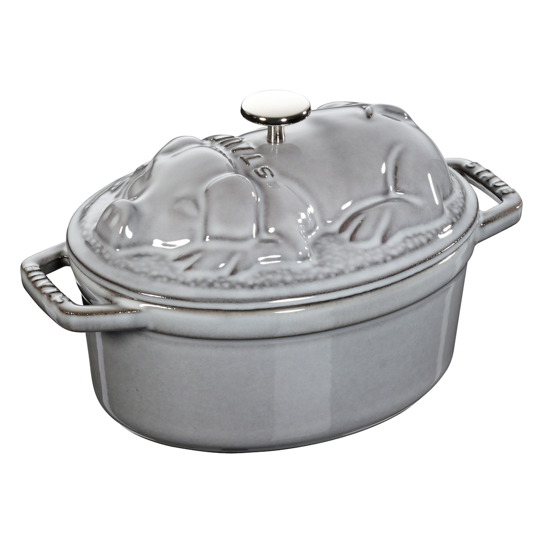 Decorative and fun, the cast iron pig cocotte is perfect for serving a pork terrine at the table - lovely with pickles and homemade bread. Induction friendly.