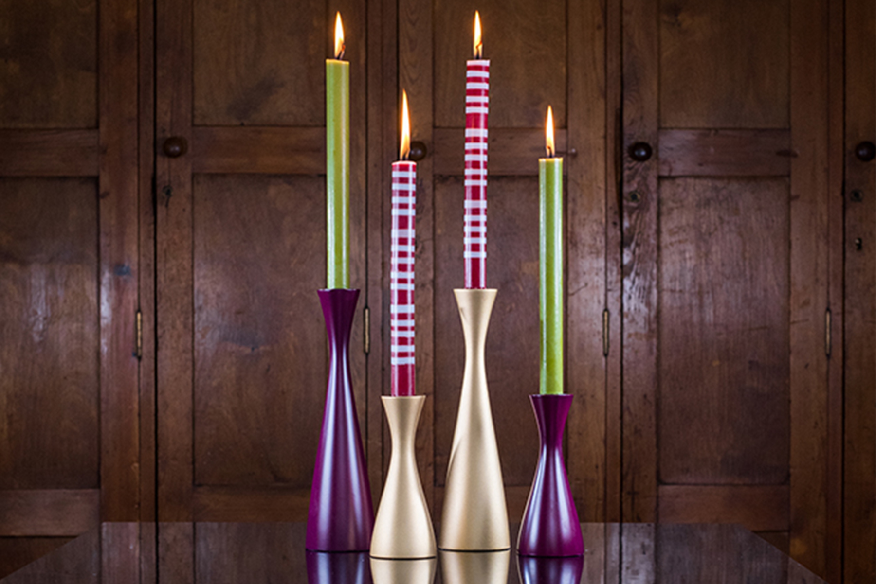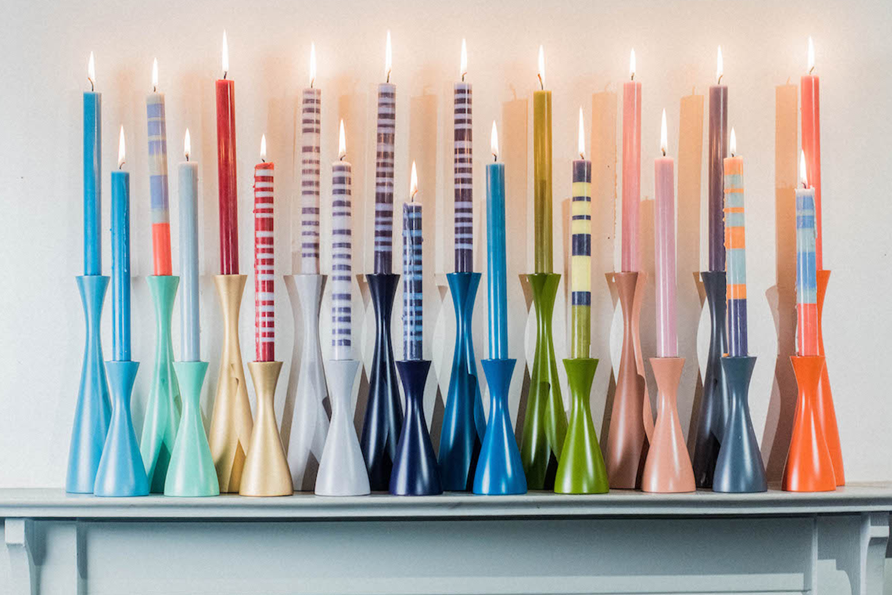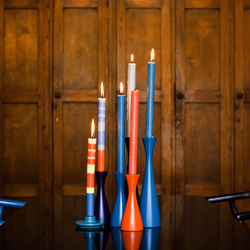 Made from waste-wooden off-cuts, that would otherwise have been chipped or burnt- these stylish candleholders are turned & painted in an array of beautiful British Colour Standard colours. Using colours from our original Dictionary of Colours, we have launched the range with an initial selection of 14 colours across three sizes A stylish must-have for every design-lover. Dress them up with our Fair Trade colourful striped and solid colour dinner candles. Available in 14 stunning colours: Opaline Green, Pompadour, Old Rose, Gull Grey, Gunmetal Grey, Old Gold, Olive Green, Derby Blue, Petrol Blue, Rust, Doge Purple, Porcelain Green, Brick Dust & Jet Black