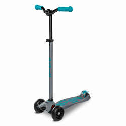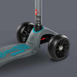 The Maxi Deluxe Pro takes everything kids know and love about our Maxi Deluxe, then adds a retro flavour. Curved chopper handlebars make a style statement, while delivering extra control for riders who like to move at speed. Wider sporty front wheels not only look impressive, they give even more stability to our three-wheeled friend. A smooth height-adjustable handlebar means the scooter grows as your child does guaranteeing years of use. Micro's patented 'lean-to-steer' mechanism has helped millions of children all over the world learn to scoot. More intuitive, simpler and let's face it, more fun - it's like surfing the pavement - your child simply leans in the direction they want to steer. The colour pop anodised stem not only stands out from the crowd but survives the toughest of knocks. The Maxi Pro has a footplate made from flexible PAGF (reinforced fibreglass) and a double-injected anti-slip silicone logo to help keep children's feet firmly planted, even in wet weather. With our innovative braking system that responds to the slightest touch, thermoplastic, toxin-free rubber handle grips that manage to be super soft and super durable at the same time and polyurethane wheels for endless adventures. The Maxi Pro is our next generation three-wheeled scooter for 21st Century explorers.